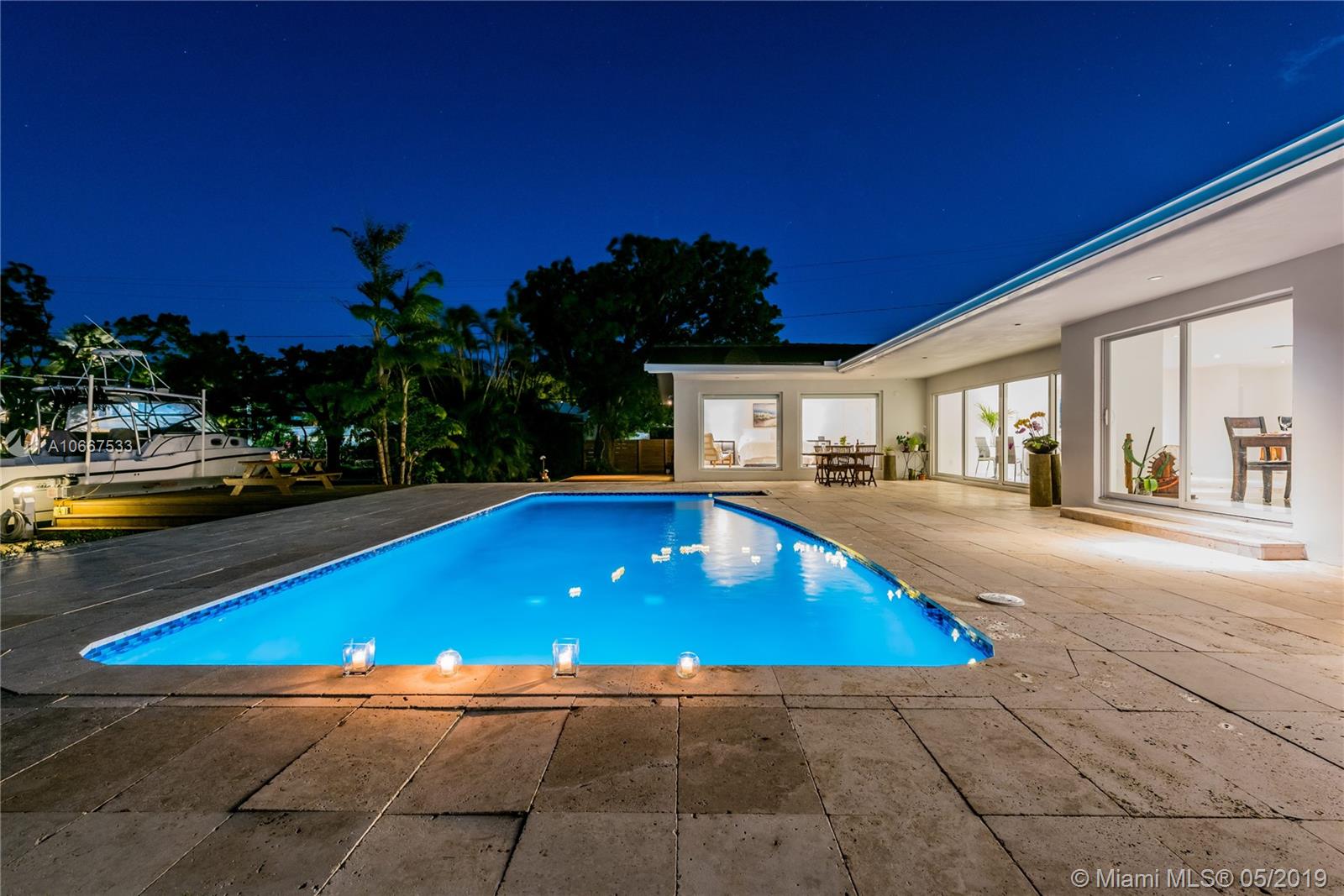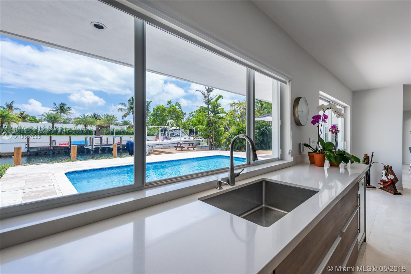 QUINTESSENTIALLY KEYSTONE! Easy, carefree, luxe living in this splendidly modern, totally renovated, corner lot waterfront home on gated Keystone Point’s prestigious Island 5. Venture off in your vessel from the new 70’ dock with 20K lb lift and 100’ frontage- 3 minutes to the bay and just 10 minutes to Haulover Inlet. Staying ashore? Savor the spacious outdoor oasis with sparkling pool and grand entertainment space. Bright and light inside with impeccably updated open flow living, dining, gourmet chef’s kitchen, new impact windows and doors, baths, plumbing, electric and roof. Expansive master suite retreat overlooks the Little Arch Creek waterway with a French door to slip out for a midnight swim. There’s simply no other home on the market like this one. QUINTESSENTIALLY YOU!
