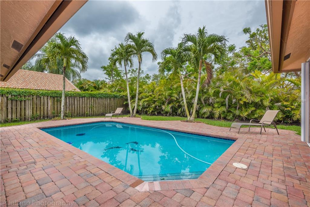 This is a must see! Spacious 4 bedroom pool home meticulously cared for with many upgrades including a bonus room which can be used as an office or playroom. New roof 2017! Separate, dining room, living room and family room. Eat in kitchen with stainless steel appliances, silestone quartz counter top and large bar that opens to family room. Split floor plan with large master bath! Tile and laminate flooring throughout home!. Covered paved patio opens to sparkling pool and lushly landscaped fenced yard. Paved driveway! Hurricane shutters! Close to Major highways, world class shopping and restaurants, Highly rated schools. Low maintenance fee! This one wont last!
