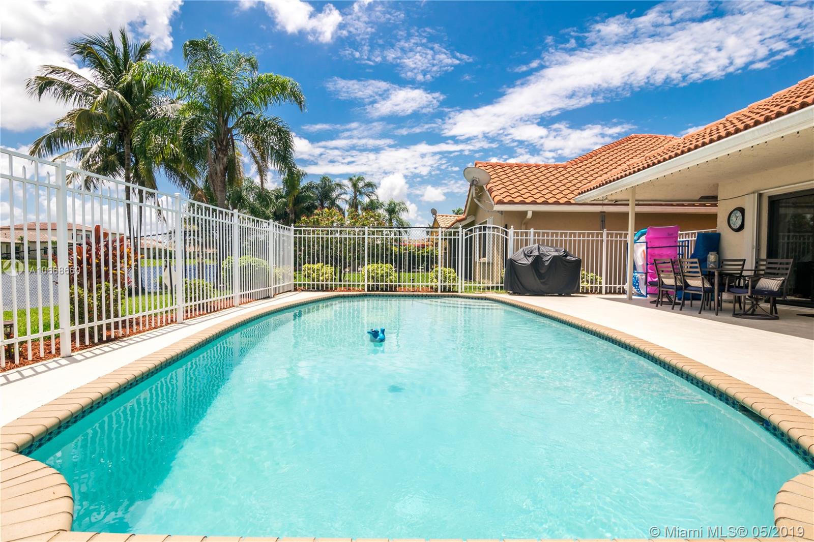Superb 3 bedroom, 2 bath pool home on large,fully fenced lakefront lot. Great layout with lake water views throughout. Upgraded kitchen w/SS appliances and newer faux-granite counters. Big master suite with beautifully upgraded bathroom including travertine marble, frameless shower & granite vanity counters. Newer roof (2006), AC (2017), water heater (2017), pool diamond-brite surfaced (2017), accordion hurricane shutters. Great location near new Pembroke Pines City Center, dining, shopping, golf courses & excellent SW Broward County schools. Close to interstate for easy commutes in every direction. Just across the small lake from homes selling from $650 to $750K in the new Raintree development.