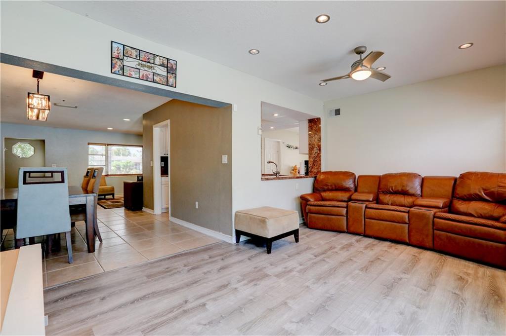 Move in ready 3/2 Pool home with 1600+sqft of living space. Open floor plan with spacious living areas is perfect for entertaining. Updated kitchen featuring granite counter tops, S/S appliances, & breakfast nook. Split floor plan w/large master suite. Second bathroom has been tastefully updated. Neutral tile in main living areas, & Pergo flooring in the bedrooms & TV room. Amazing fully fenced in backyard with plenty of room to roam, & an over sized pool. Some impact windows. No HOA.