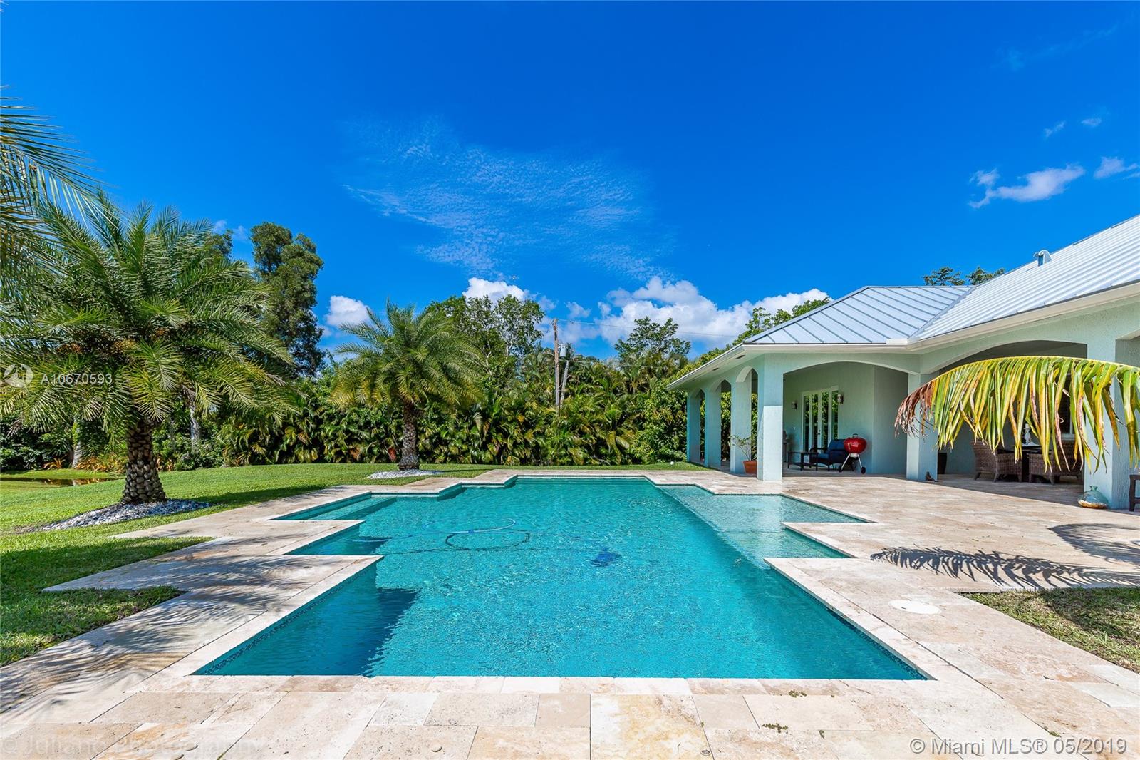 GORGEOUS PRIVATE ESTATE BUILT IN 2016. UNIQUE 5,328 SQ. FT. CONTEMPORARY "DREAM HOME" NESTLED ON 2.35 BEAUTIFUL ACRES. ENTER THIS PROPERTY THROUGH A SECLUDED WINDING DRIVEWAY SURROUNDED BY LUSH TROPICAL LANDSCAPING AND LARGE BAMBOO AND OLIVE TREES. THIS IMMACULATE HOME HAS HURRICANE-IMPACT GLASS WINDOWS & DOORS THROUGHOUT AND A STANDING-SEAMED METAL ROOF, CONSIDERED TO BE THE FINEST HURRICANE PROTECTION. THE OPEN KITCHEN IS ABSOLUTELY STUNNING AND FEATURES HI-END THERMADOR APPLIANCES AND A HUGE CENTER ISLAND WITH WHITE QUARTZ COUNTER-TOPS. HUGE MASTER SUITE OVERLOOKS THE CUSTOM POOL WITH EXQUISITE BATHROOM FINISHES, AND A SENSATIONAL WALK-IN CLOSET THAT'S FIT FOR ROYALTY! EXECUTIVE OFFICE/BEDROOM, EXERCISE ROOM/BEDROOM, & TWO HUGE JR. MASTER SUITES. AN AMAZING OPPORTUNITY!