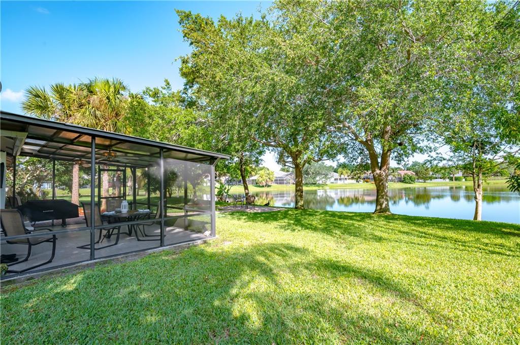 TURTLE RUN HOME, PREVIOUS MODEL- AN AMAZING FIND! Location to this beauty could not be more perfect. Conveniently located at front of the neighborhood directly across from the community pool & park, on a cul-de-sac. Huge back yard boasts two mango trees full of budding fruit overlooking the scenic lake (no neighbors behind). Patio & BBQ area ideal for gatherings on private, screened-in patio. A tech-friendly home. This Smart Home has Alexa controlled A/C & Google Asst in kitchen. Land survey is new & will share with buyer to save exp. Low HOA. A+schools. Access to Turtle Run Trails and Tall Cypress Nature Boardwalk. Ext driveway and covered entrance. New A-C, Newer W/D, Modern Cabinets, Updated bathrooms, 20 ft ceilings, Open & Airy with direct view of the lake. Bring your fussiest buyer!