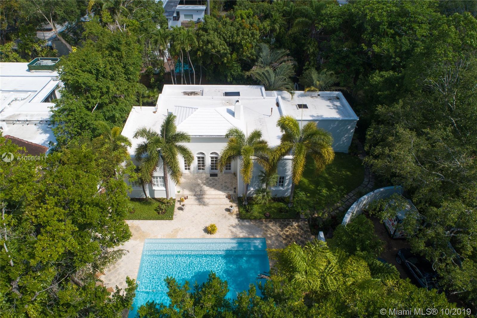 Spectacular one of a kind Mediterranean gem! The ultimate place to entertain with a fabulous pool and back yard in prime North Coconut grove location. This is a rare find: when you walk through the walled and gated 15,000 SQF lot, you will be wowed by an imposing & beautiful white Villa and inviting oversized deep blue pool: a truly unique oasis, in the heart of Miami. The home itself features grand entertainment spaces, a large open foyer with dramatic double height ceiling filled with natural sunlight, 3 bedrooms with en-suite bathrooms + a separate housekeeper’s room/entrance. This home is located a few blocks away from David T Kennedy Park and minutes from Downtown Coconut Grove & Brickell. Live on a coral rock ridge and work/play in one of the hottest areas in Miami Dade. County.