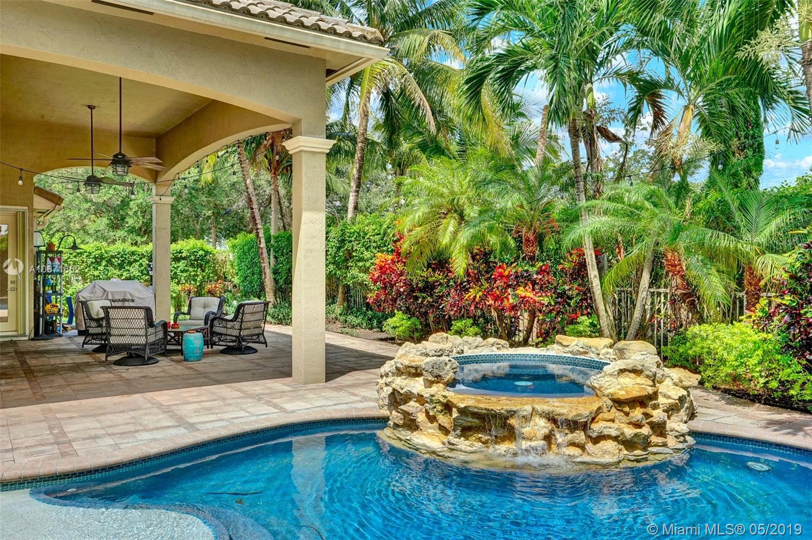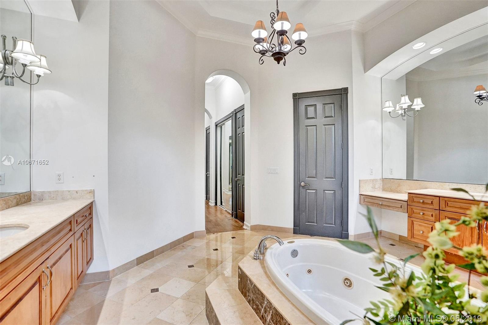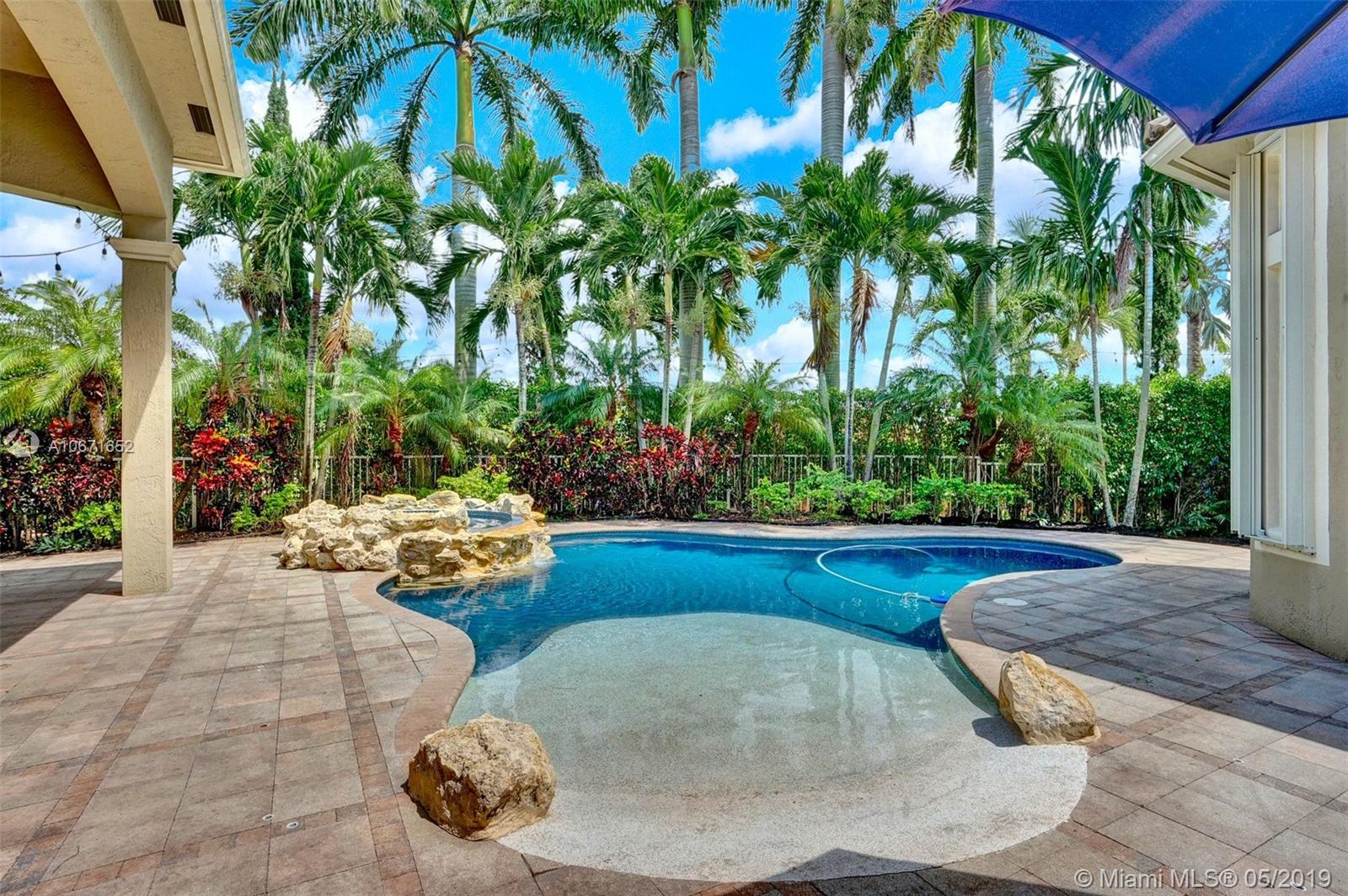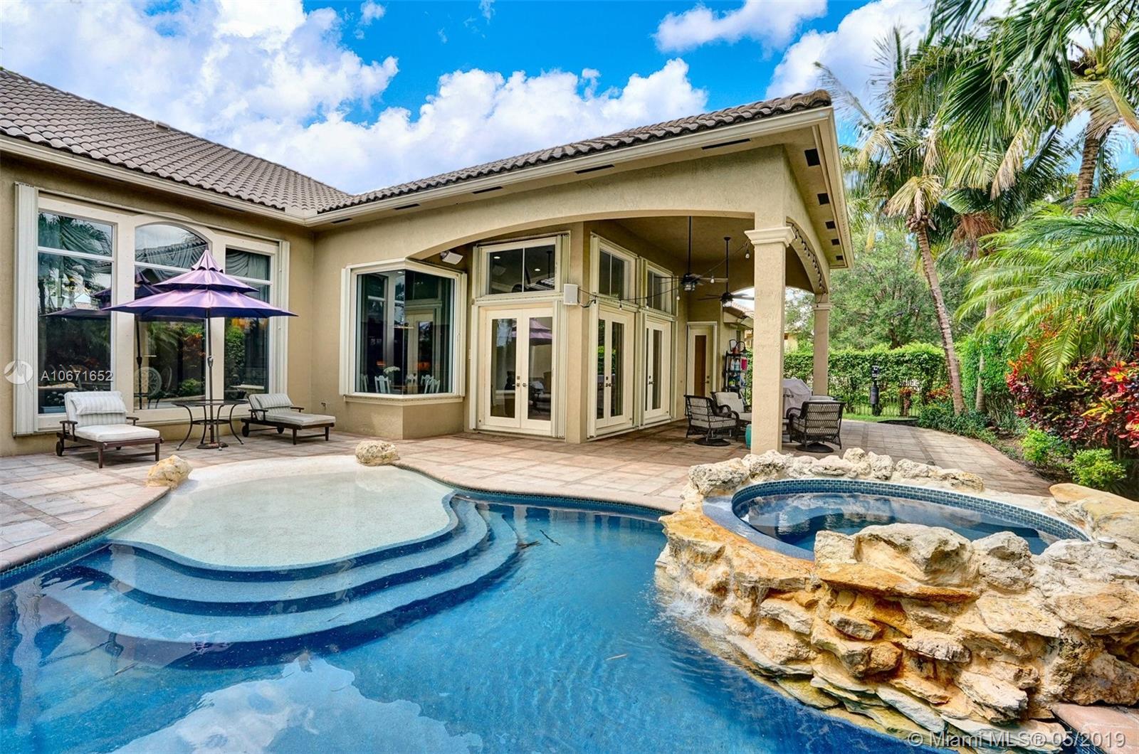 Pembroke Falls Stirling model set behind the Gates of The Sanctuary, corner lot, largest single story 5/3.5 or 4/3.5 plus Den optional floor plan layout, spacious open plan, formal foyer, dining & living room, upgraded kitchen and bathrooms, gourmet island, wooden cabinets, granite tops, combination of tile & wooden floors, crown molding, french doors, chandeliers, central vac, coffer ceilings, accordion shutters protection, outdoors entertainment features amazing customized pool w/rock formation edges, hot tub, covered patio, fenced yard, lush landscaping & more! Community clubhouse offers huge pool, hot tub, gym, tennis, ball room, basketball & more. Bring offers now.