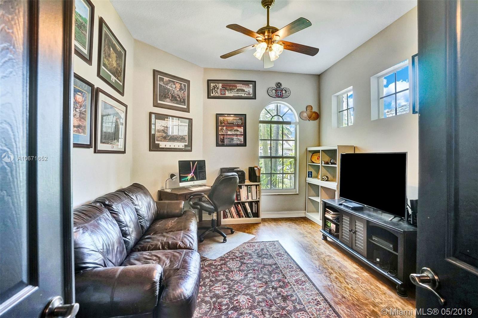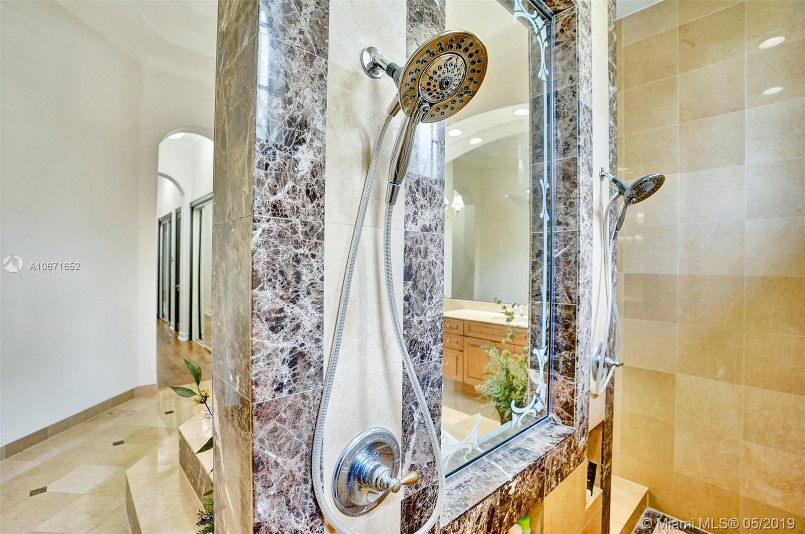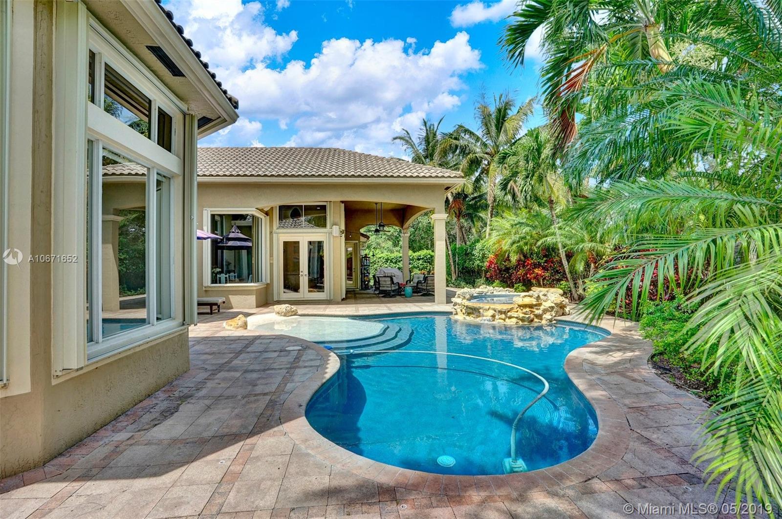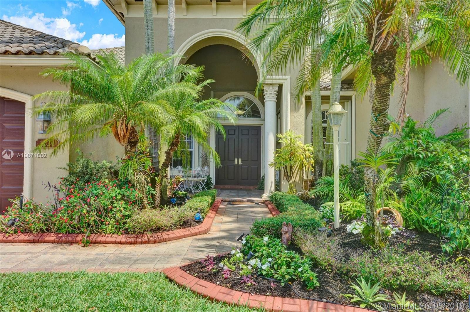 Pembroke Falls Stirling model set behind the Gates of The Sanctuary, corner lot, largest single story 5/3.5 or 4/3.5 plus Den optional floor plan layout, spacious open plan, formal foyer, dining & living room, upgraded kitchen and bathrooms, gourmet island, wooden cabinets, granite tops, combination of tile & wooden floors, crown molding, french doors, chandeliers, central vac, coffer ceilings, accordion shutters protection, outdoors entertainment features amazing customized pool w/rock formation edges, hot tub, covered patio, fenced yard, lush landscaping & more! Community clubhouse offers huge pool, hot tub, gym, tennis, ball room, basketball & more. Bring offers now.