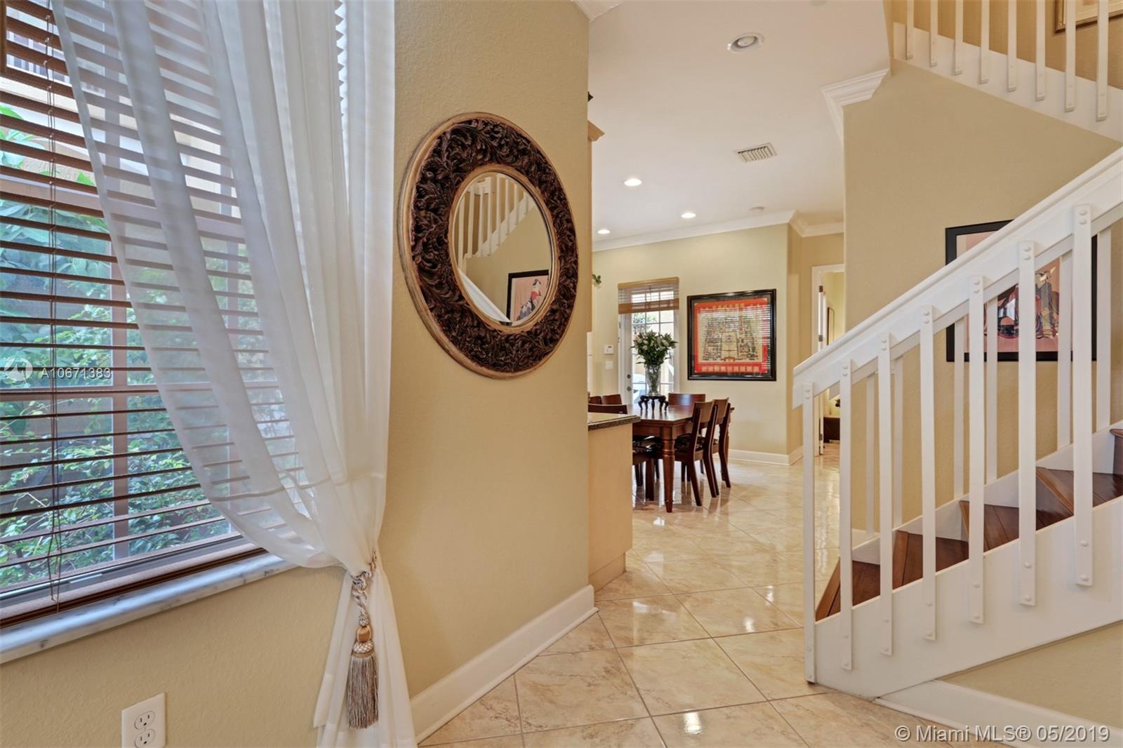 This impeccable home is move-in ready and a must see! A spacious front porch is perfect for welcoming family and friends into this upgraded home with timeless and tasteful finishes. Porcelain floors, volume ceilings, crown molding, stainless steel appl, granite cntps, and an ext'ed 2 car garage to name a few. An open living/dining area with a large updated kitchen that leads to outdoor space makes this home ideal for gatherings. The upstairs boasts a huge master bdrm with en-suite as well as add'l living space that can easily be converted into a 4th bdrm. Enjoy the resort style amenities in this lux community that offers a gym, pool, playgrounds and open space for socializing with your friends and neighbors. Centrally located, close to shopping, excellent schools, and major highways.