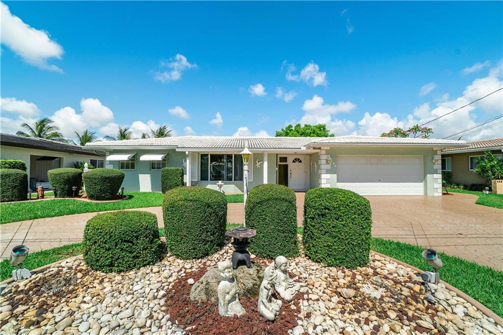 Welcome home to this beautiful, extremely well maintained home! Gorgeous manicured yard. 3 bedrooms, split plan, 2 bathrooms (guest bathroom is a cabana bath to the pool), separate living room and family room, formal dining as well as eat in kitchen. Interior has just been freshly painted. Heated screened pool, tankless water heater, Trane A/C in 2011, S-tile roof in 2006. Whole house generator. Enjoy having your boat in your backyard at your private dock with just 15 minutes to the ocean and only 1 fixed bridge at Federal Hwy. 2 car garage and beautiful stamped concrete circular driveway. Tons of extra storage in garage. Located on a beautiful and quiet cul de sac street. APPRAISAL DONE 7/1/19 AND PRICED TO SELL!