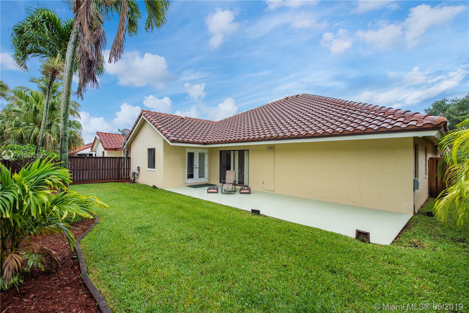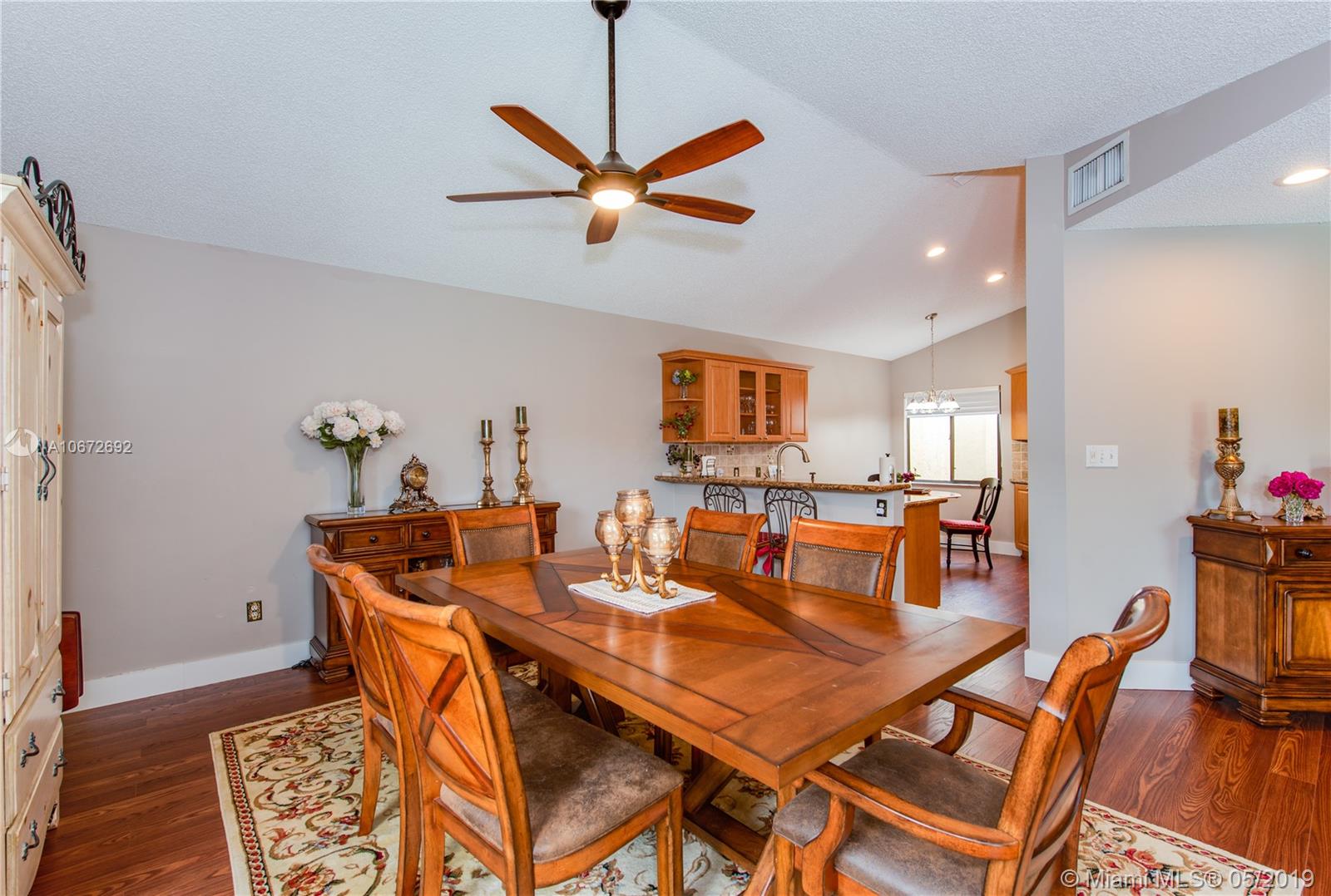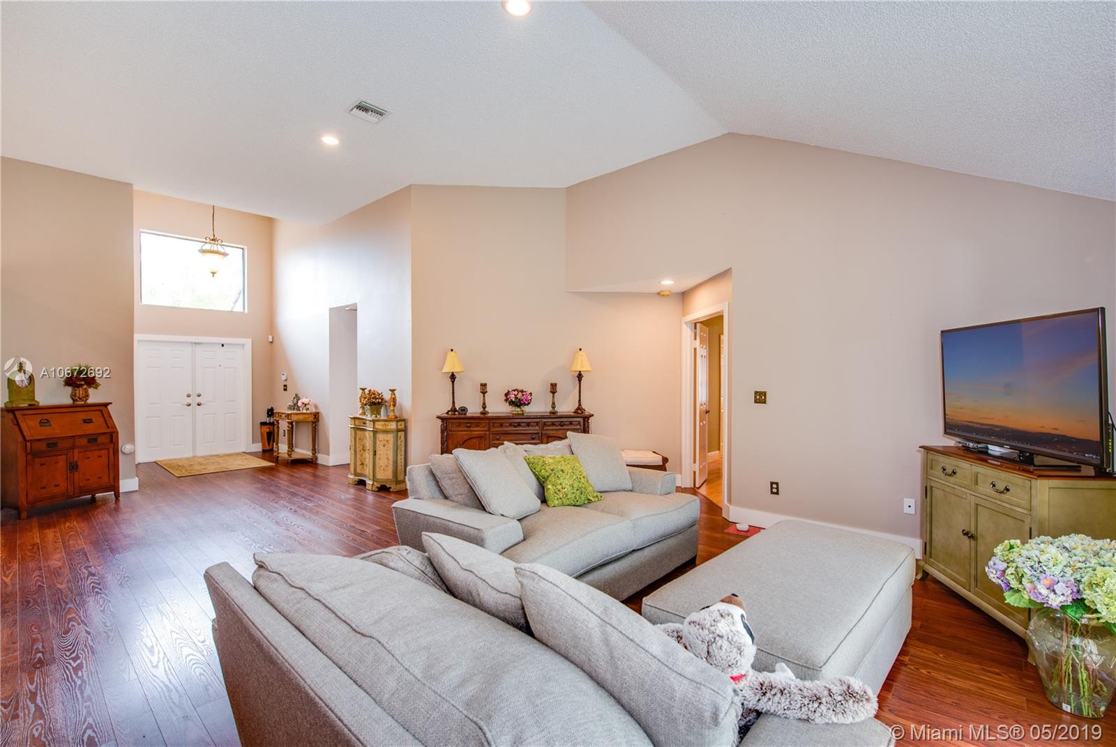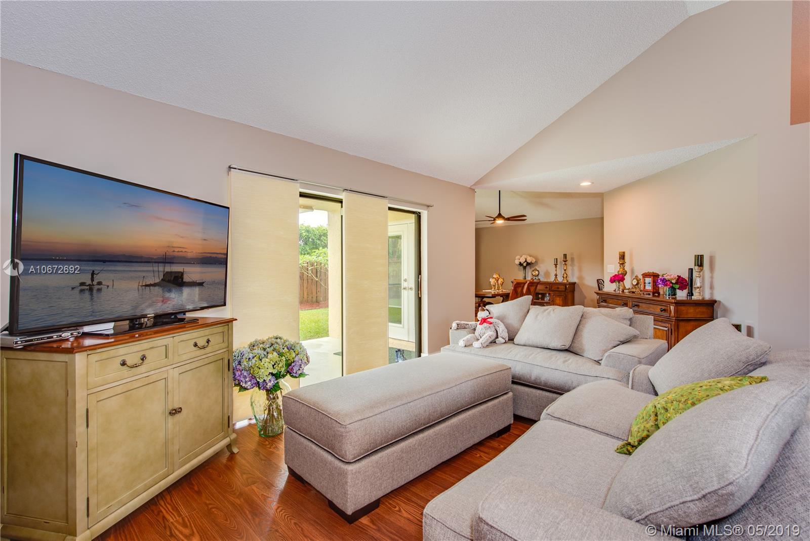 Picture perfect 3/2 with office. This is a unique home with the atrium converted to interior office space for added under air square footage. Loaded with upgrades including beautiful kitchen, highly upgraded baths and gorgeous laminate flooring. Flowing open layout with lots of natural light from the many windows and soaring ceilings. Private fenced yard and large covered patio. Roof 2.5 years old. Quaint Pembroke Pines neighborhood right across street from excellent elementary school. Great location.