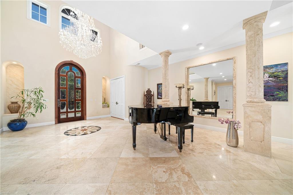 • Característica Interior:BuiltinFeatures, BedroomonMainLevel, DiningArea, SeparateFormalDiningRoom, FrenchDoorsAtriumDoors, Fireplace, HighCeilings, KitchenIsland, SittingAreainMaster, UpperLevelMaster, Bar, WalkInClosets, Intercom