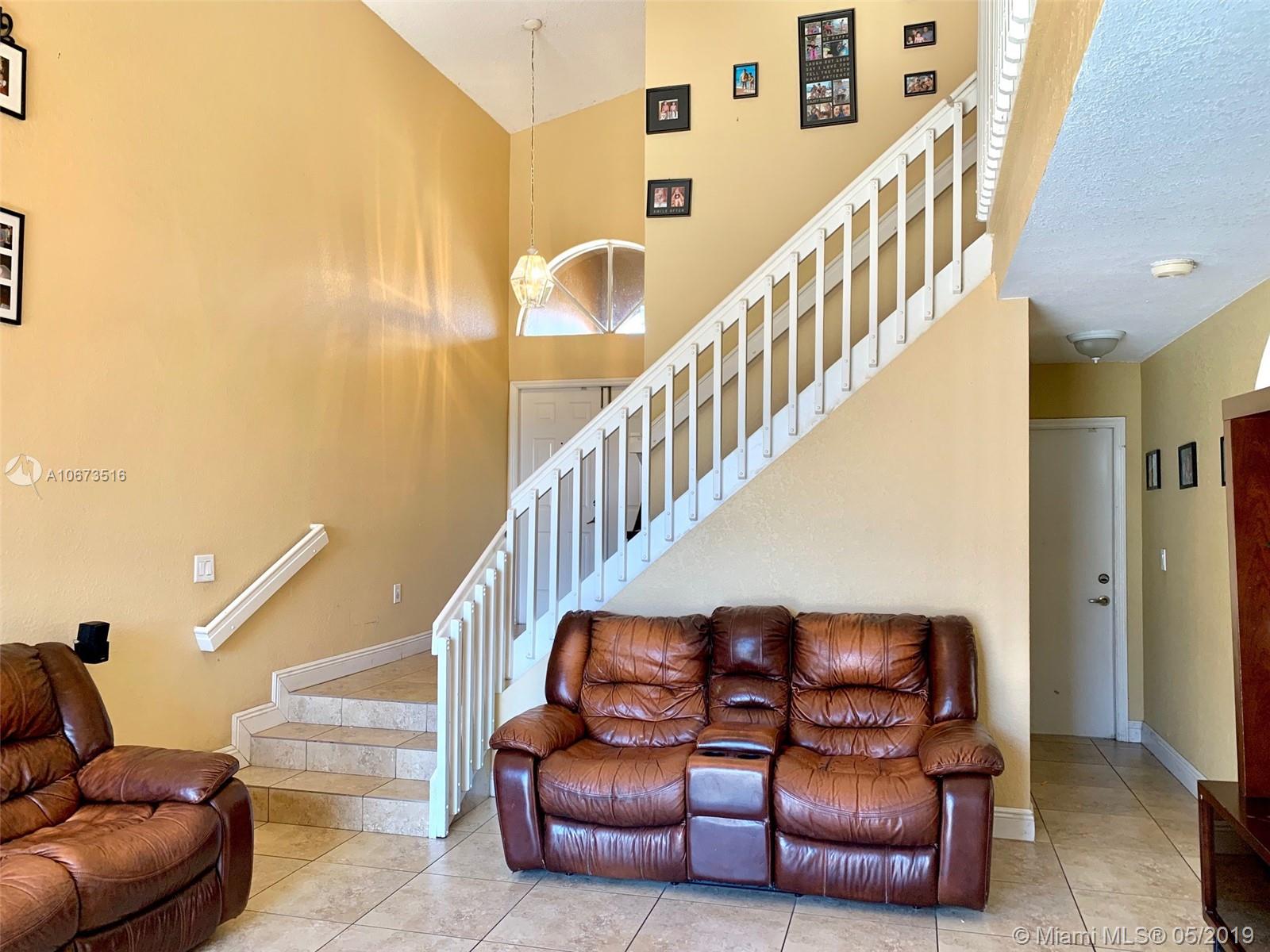 Gorgeous elegant home Located just minutes from Miami Lakes, enjoy the spacious well maintained two storied single family home in the Spanish Lakes community. This beautiful home is perfect for entertaining, spacious first floor layout with open kitchen and formal dining area. Two car garage, washer and dryer and a remodeled back yard. Association fee include Alarm, and basic cable as well.