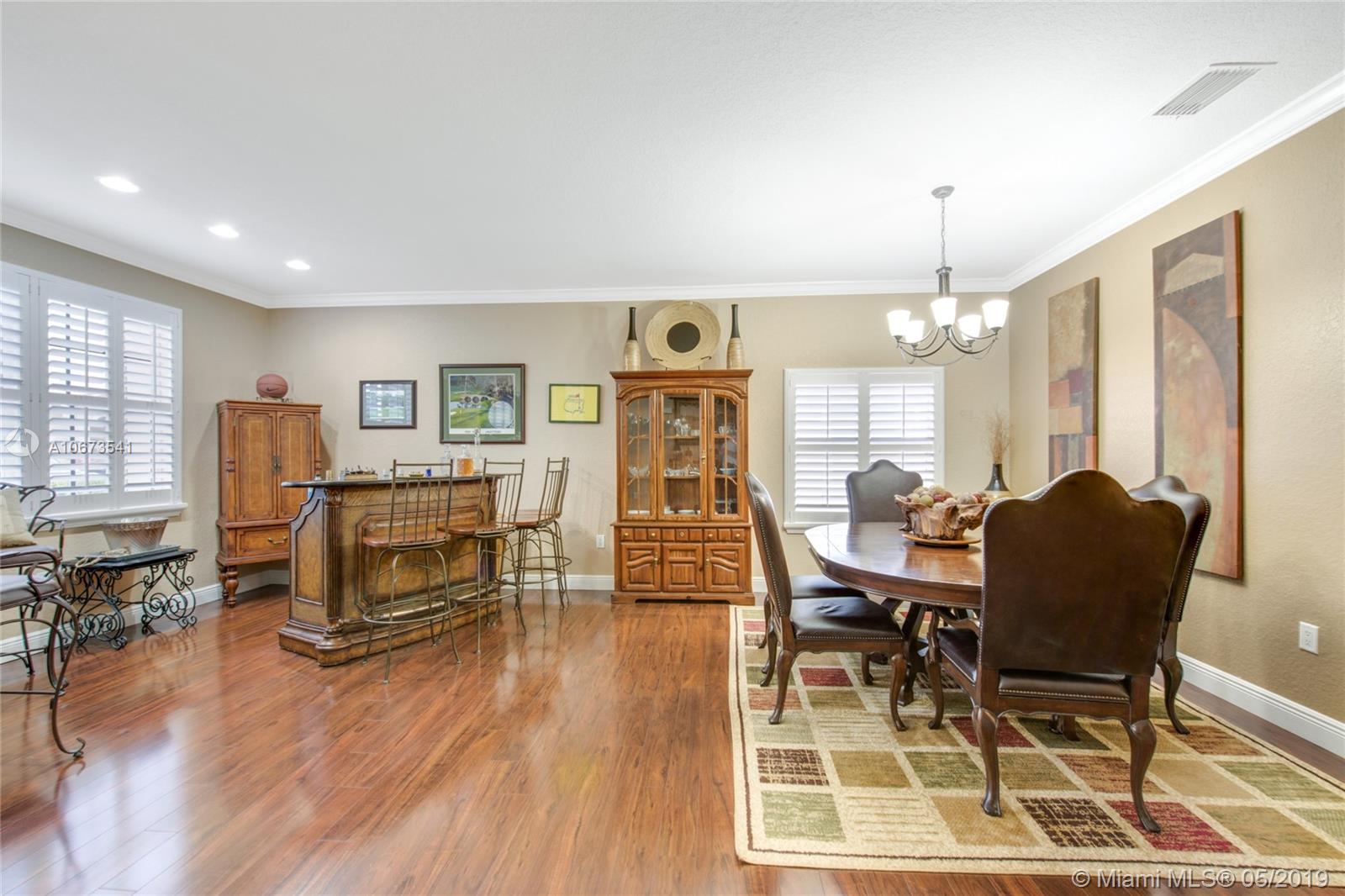 Pack your bags and get ready to move because we have got just the house you've been looking for! Former 4 bedroom, 2 bathroom house- now a 3 bedroom that can be easily converted back if you wish! This home has a tasteful transitional design where modern and traditional meet and offers elegant wood flooring throughout, modern lighting and accents, large kitchen with stainless steel appliances, cooking island and snack bar, large living room, formal dining, laundry room, over-sized two car garage, spacious bedrooms, huge master suite with sitting/office space, and luxurious master bath with frame-less glass shower. Charming backyard with exquisite landscaping and covered patio - perfect for entertaining! Community amenities include children's playground, state-of-the-art gym, pool, and more!