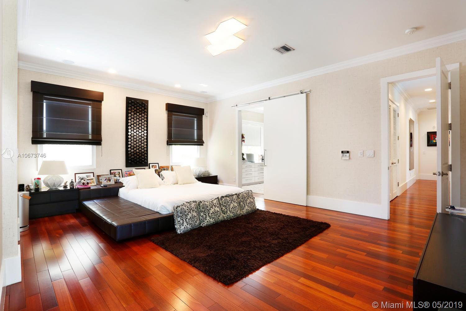 Stunning, magazine quality home in prestigious North Coconut Grove. Walk to bayfront parks & marinas, yet located at one of the highest sea-level elevations in South Florida. Totally walled & gated for ultra-privacy. Light-filled living spaces offer double-height ceilings and a blending of classic architectural details with a modern vibe. Expansive formal living & dining rooms for entertaining. Family room with custom built-ins, opens to the spectacular high-end kitchen w/white-lacquered cabinetry, walk-in pantry, professional gas range & adjacent breakfast area. Incredible master suite features his/hers walk-in closets (hers: 12’ X 19’), luxurious bath w/soaking tub & private terrace overlooking the garden & tranquil pool. Minutes to the Grove village center, MIA, downtown & the Beaches.