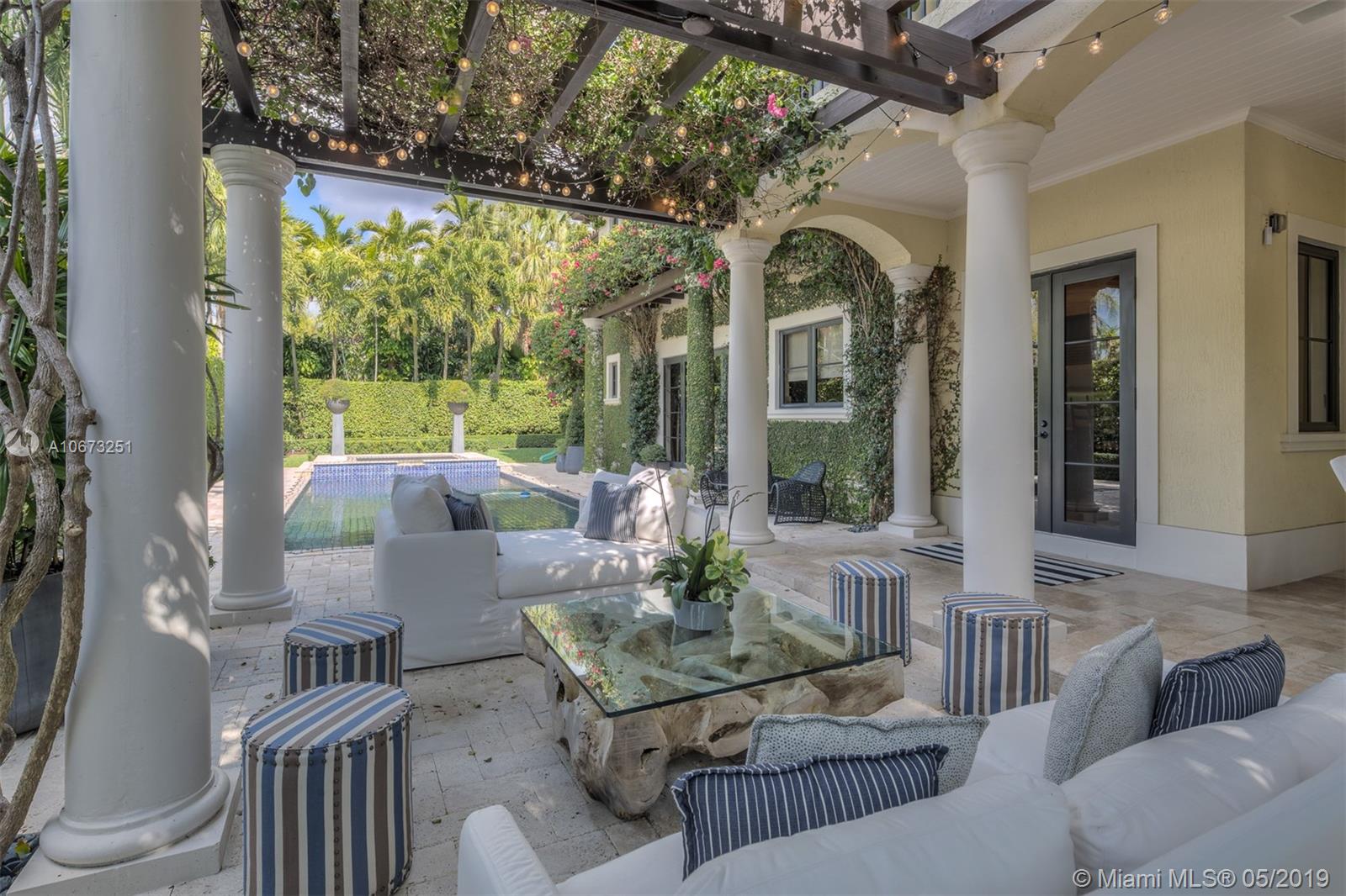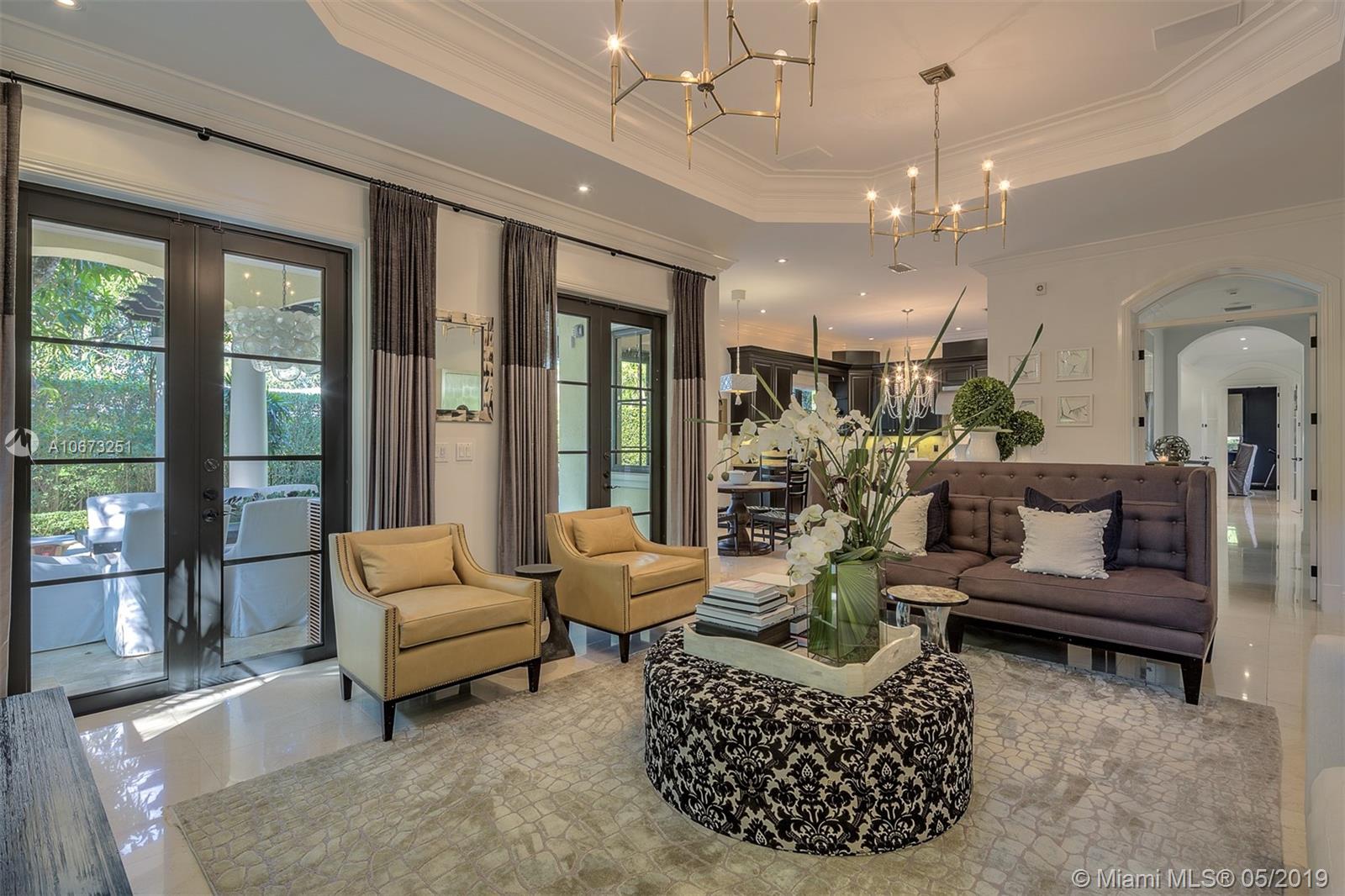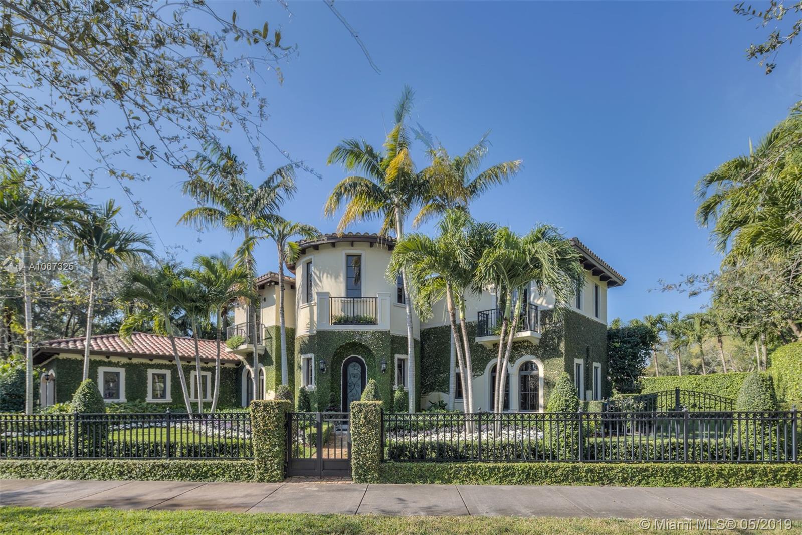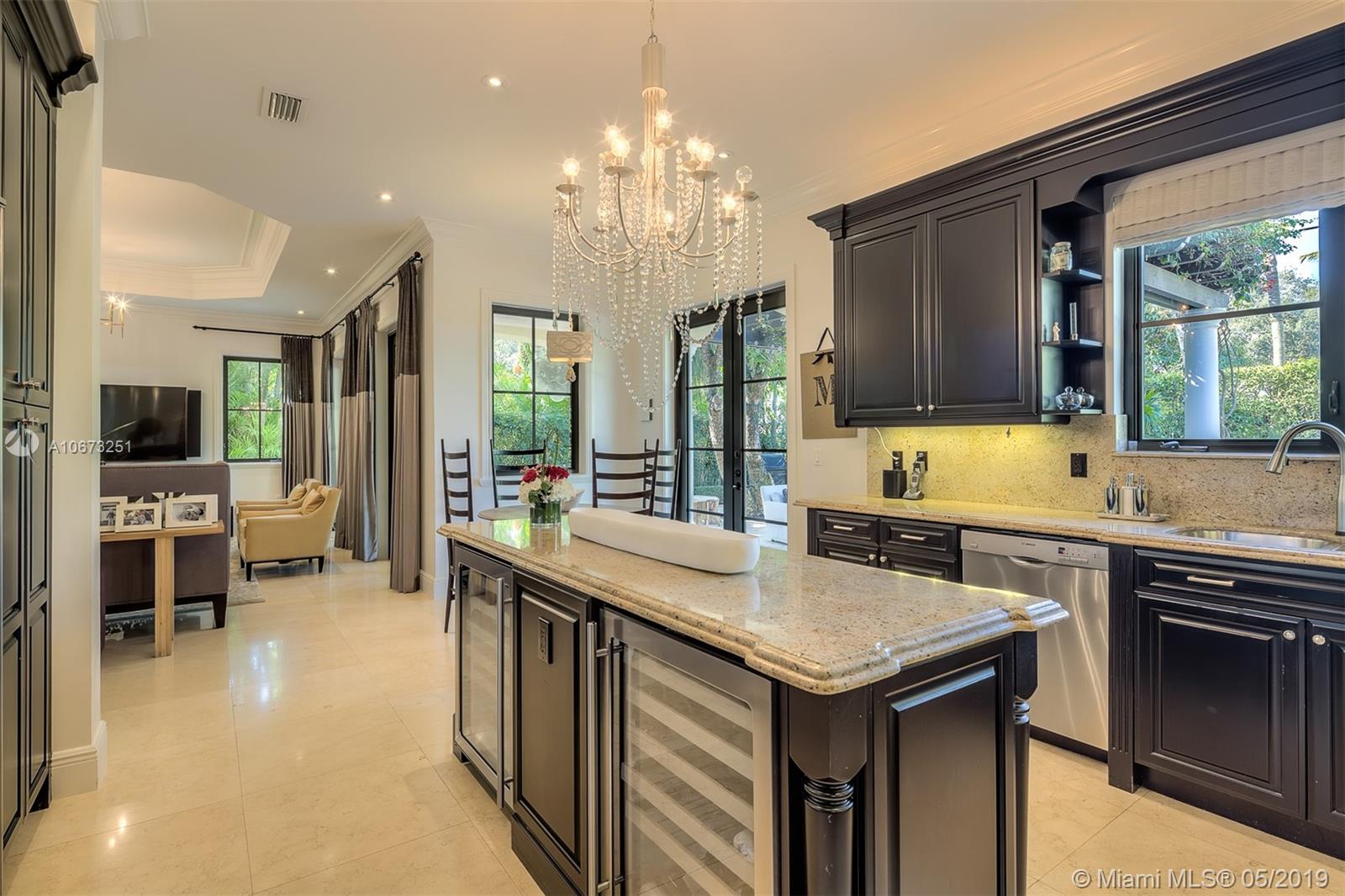 Elegant two story home perfectly situated between downtown Coral Gables, Coconut Grove and South Miami. Features 6 bedrooms, 5.5 baths, two car garage. Pool with Jacuzzi spa, two large terraces and patio pergola. Home fully gated with video surveillance system, pool heater, generator, double AC Units, top of the line finishes including 2 x 2 limestone floors, gourmet island kitchen with custom solid wood cabinets, granite counter tops, gas range, and appliances by Subzero and Wolf. Impact french doors and casement windows. Professional exterior landscape design. All interior design and décor by Fine Line Furniture. No detail has been left out of this stunning, perfectly maintained, one of a kind home.
