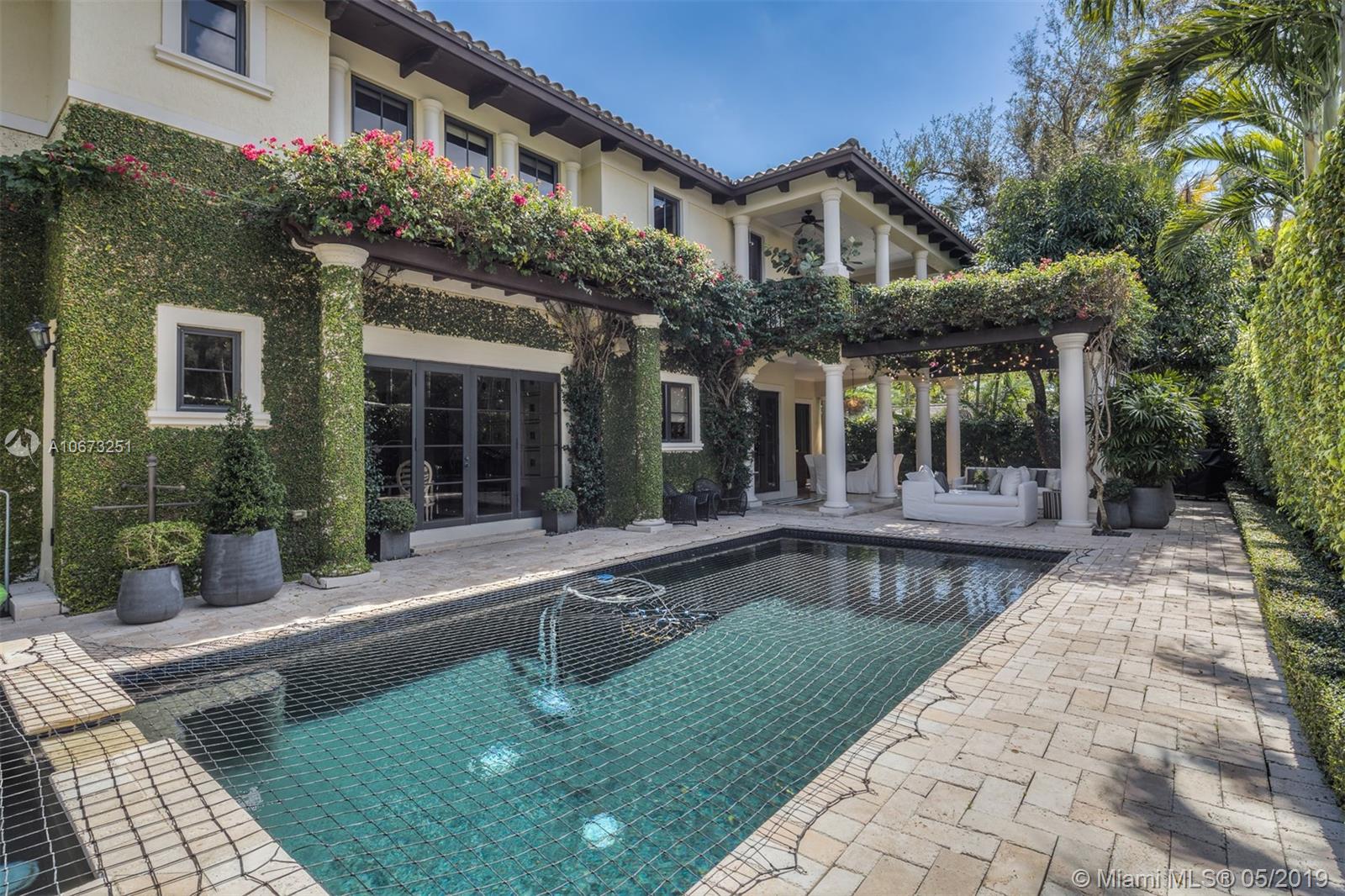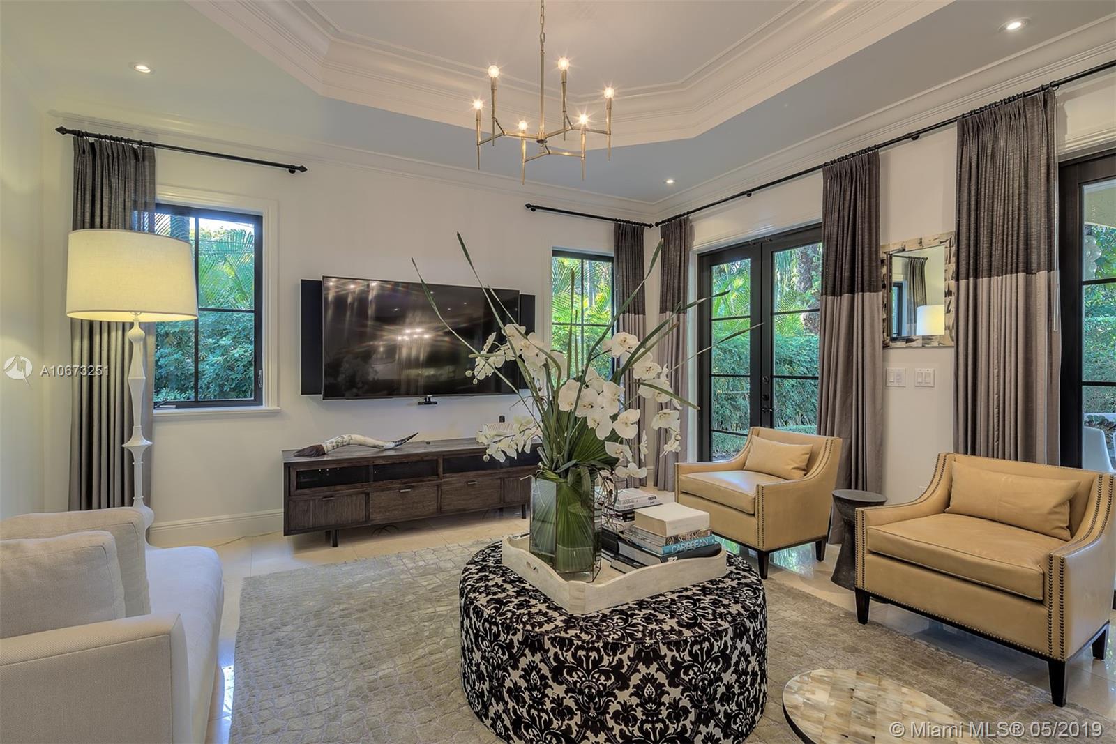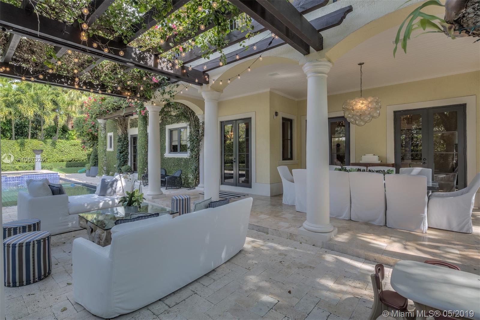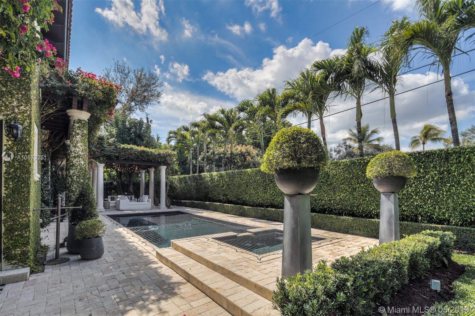 Elegant two story home perfectly situated between downtown Coral Gables, Coconut Grove and South Miami. Features 6 bedrooms, 5.5 baths, two car garage. Pool with Jacuzzi spa, two large terraces and patio pergola. Home fully gated with video surveillance system, pool heater, generator, double AC Units, top of the line finishes including 2 x 2 limestone floors, gourmet island kitchen with custom solid wood cabinets, granite counter tops, gas range, and appliances by Subzero and Wolf. Impact french doors and casement windows. Professional exterior landscape design. All interior design and décor by Fine Line Furniture. No detail has been left out of this stunning, perfectly maintained, one of a kind home.
