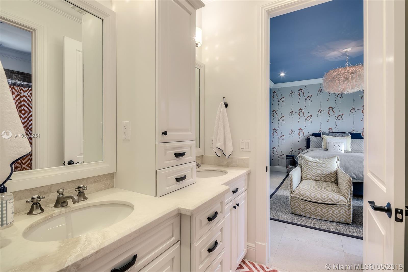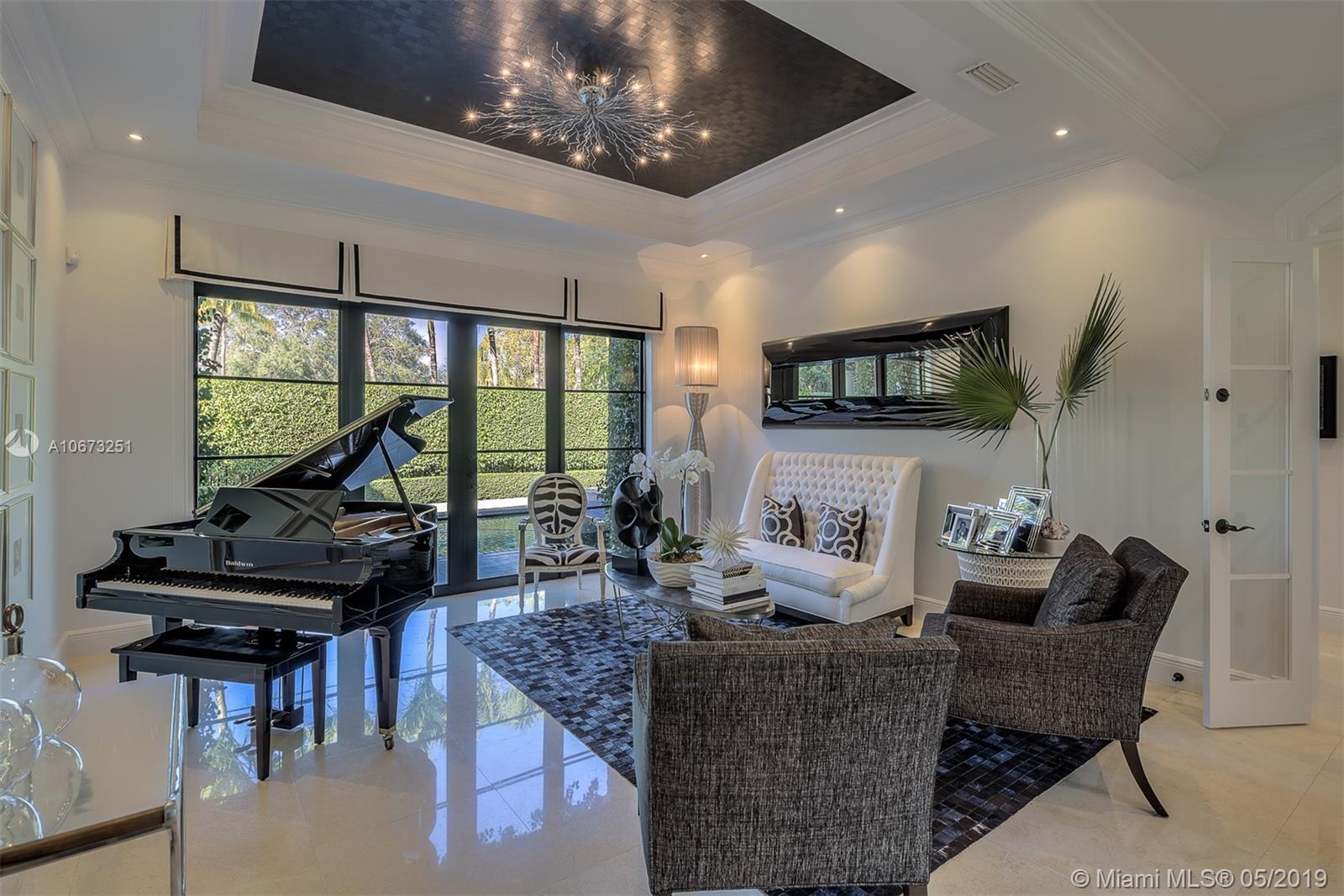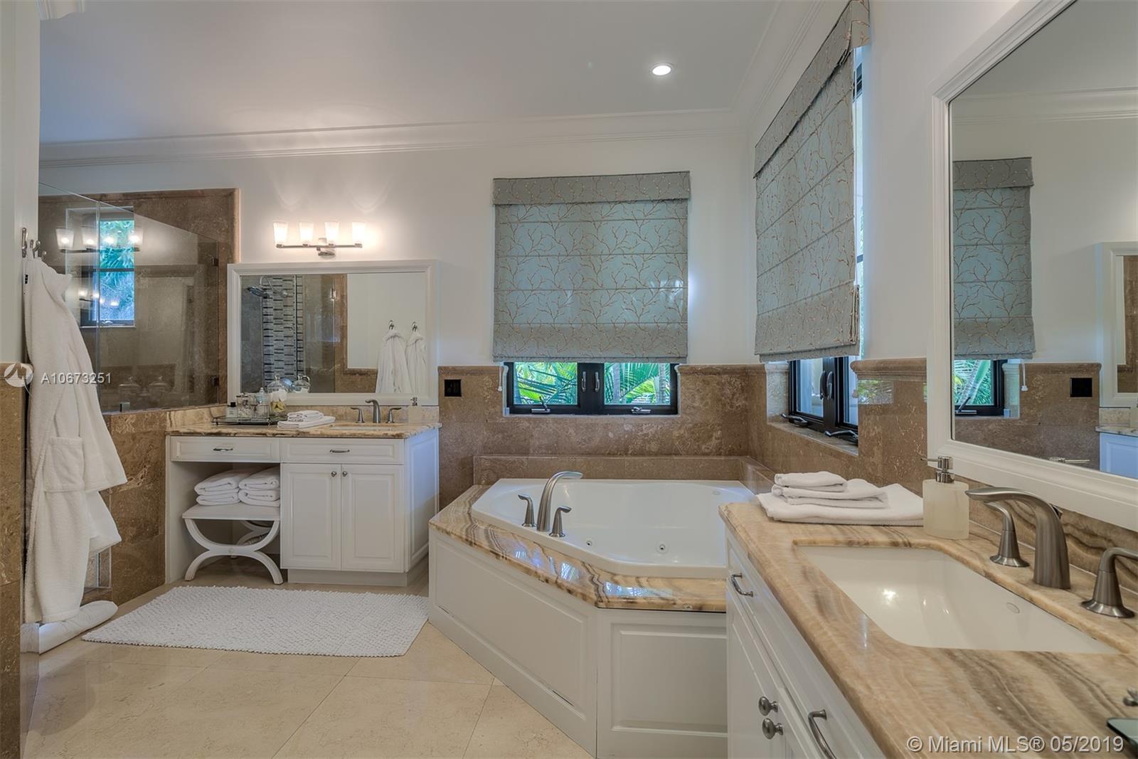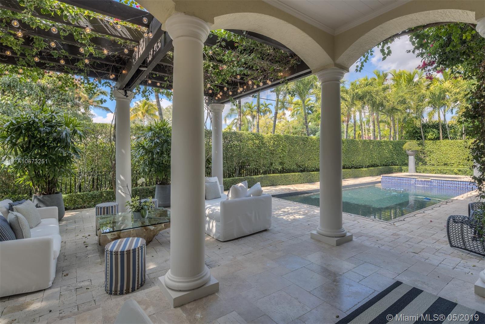 Elegant two story home perfectly situated between downtown Coral Gables, Coconut Grove and South Miami. Features 6 bedrooms, 5.5 baths, two car garage. Pool with Jacuzzi spa, two large terraces and patio pergola. Home fully gated with video surveillance system, pool heater, generator, double AC Units, top of the line finishes including 2 x 2 limestone floors, gourmet island kitchen with custom solid wood cabinets, granite counter tops, gas range, and appliances by Subzero and Wolf. Impact french doors and casement windows. Professional exterior landscape design. All interior design and décor by Fine Line Furniture. No detail has been left out of this stunning, perfectly maintained, one of a kind home.