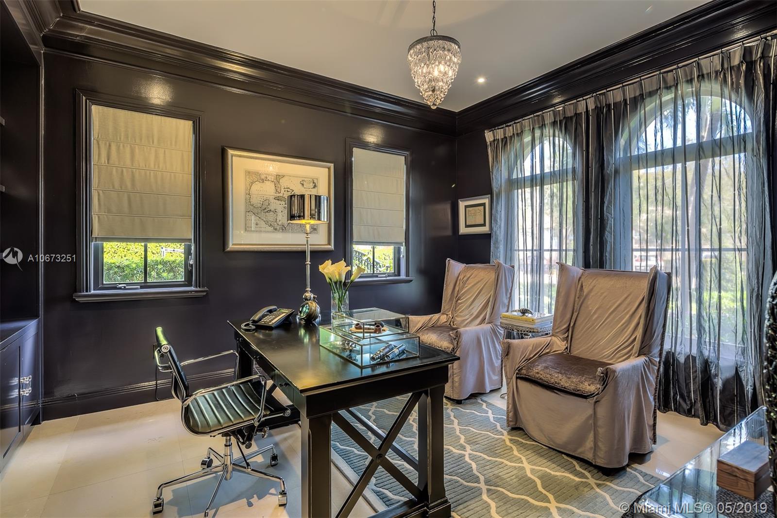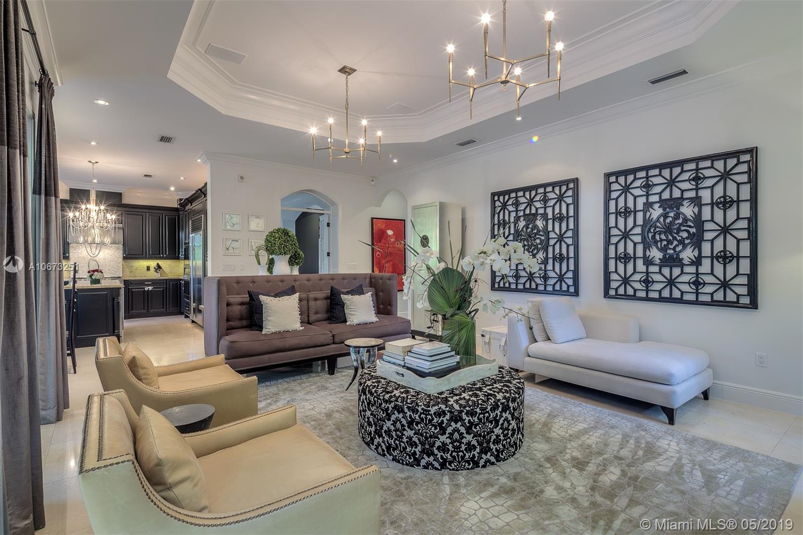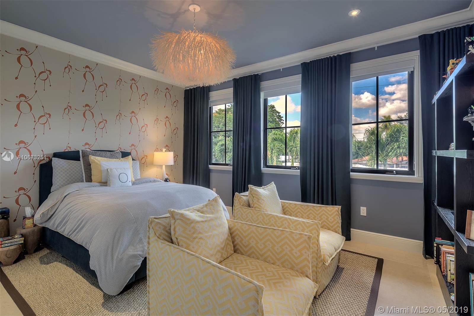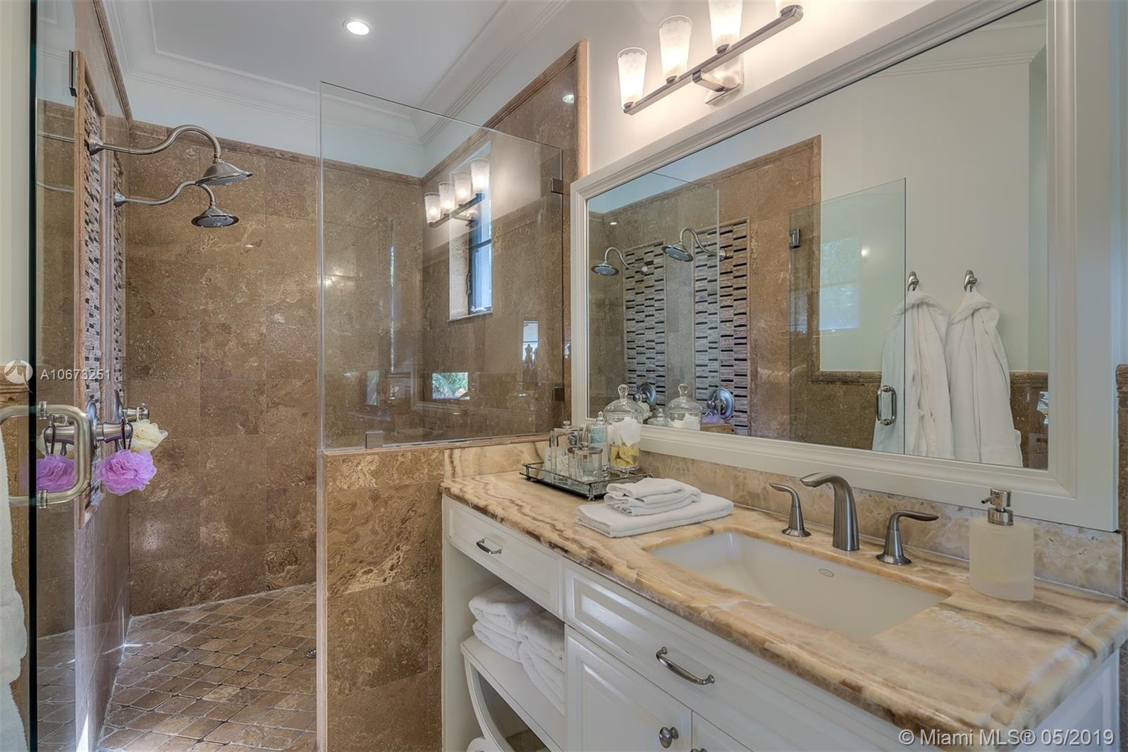 Elegant two story home perfectly situated between downtown Coral Gables, Coconut Grove and South Miami. Features 6 bedrooms, 5.5 baths, two car garage. Pool with Jacuzzi spa, two large terraces and patio pergola. Home fully gated with video surveillance system, pool heater, generator, double AC Units, top of the line finishes including 2 x 2 limestone floors, gourmet island kitchen with custom solid wood cabinets, granite counter tops, gas range, and appliances by Subzero and Wolf. Impact french doors and casement windows. Professional exterior landscape design. All interior design and décor by Fine Line Furniture. No detail has been left out of this stunning, perfectly maintained, one of a kind home.