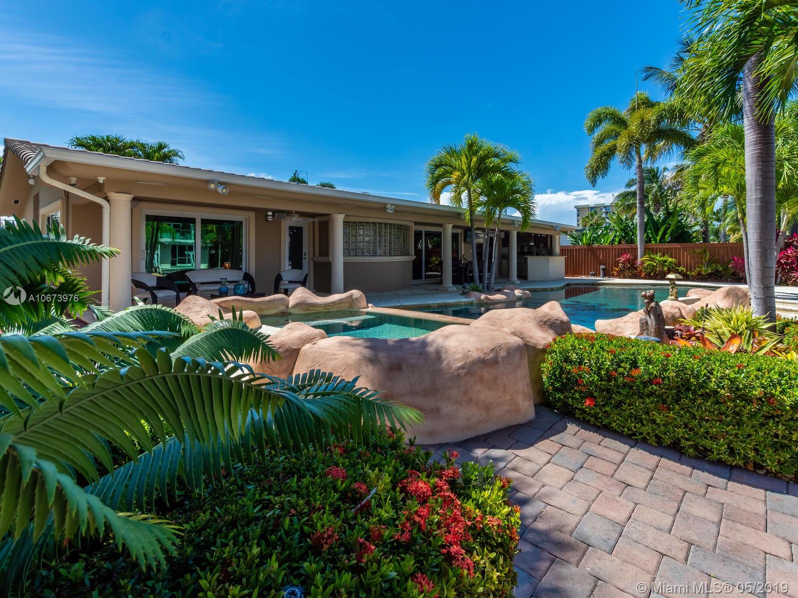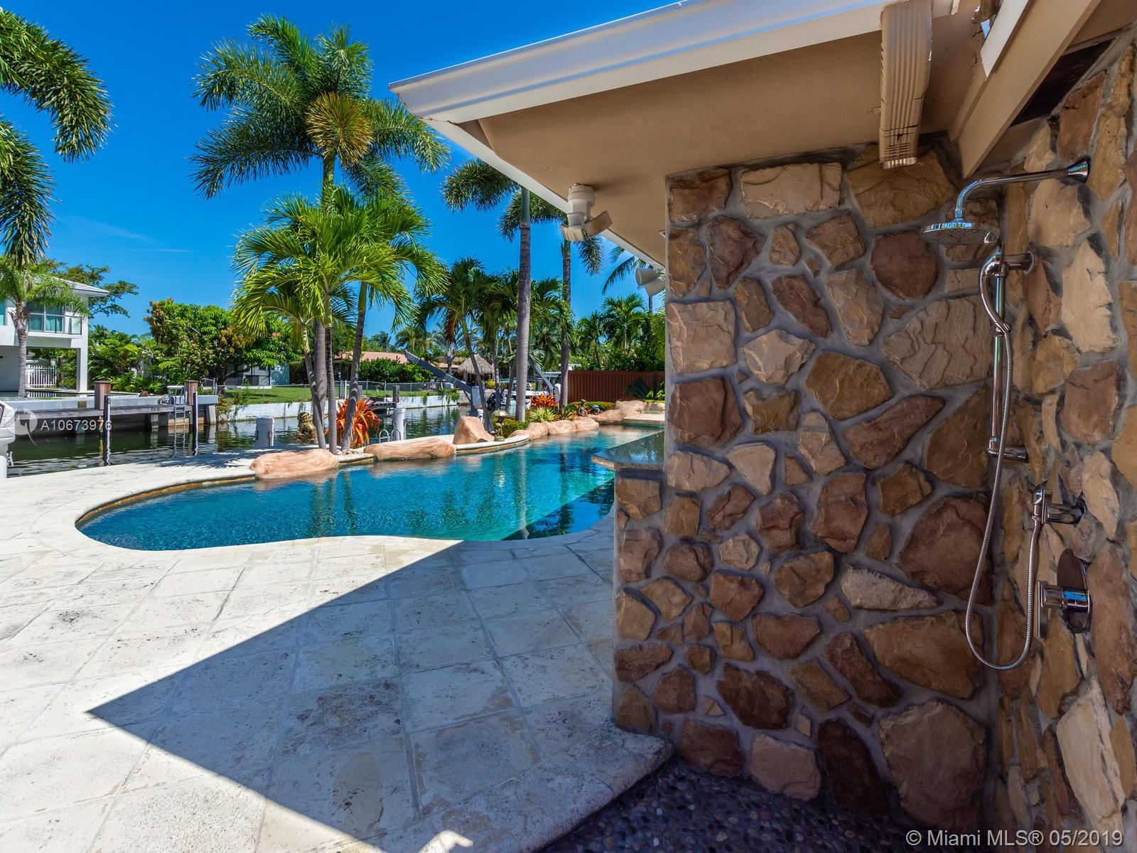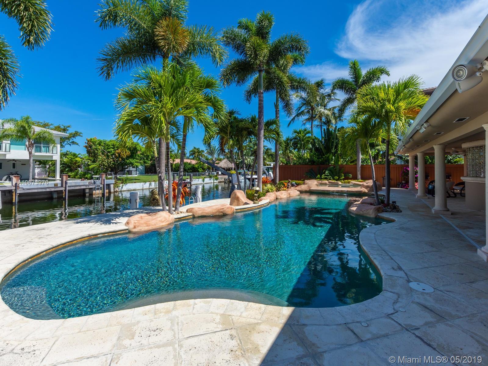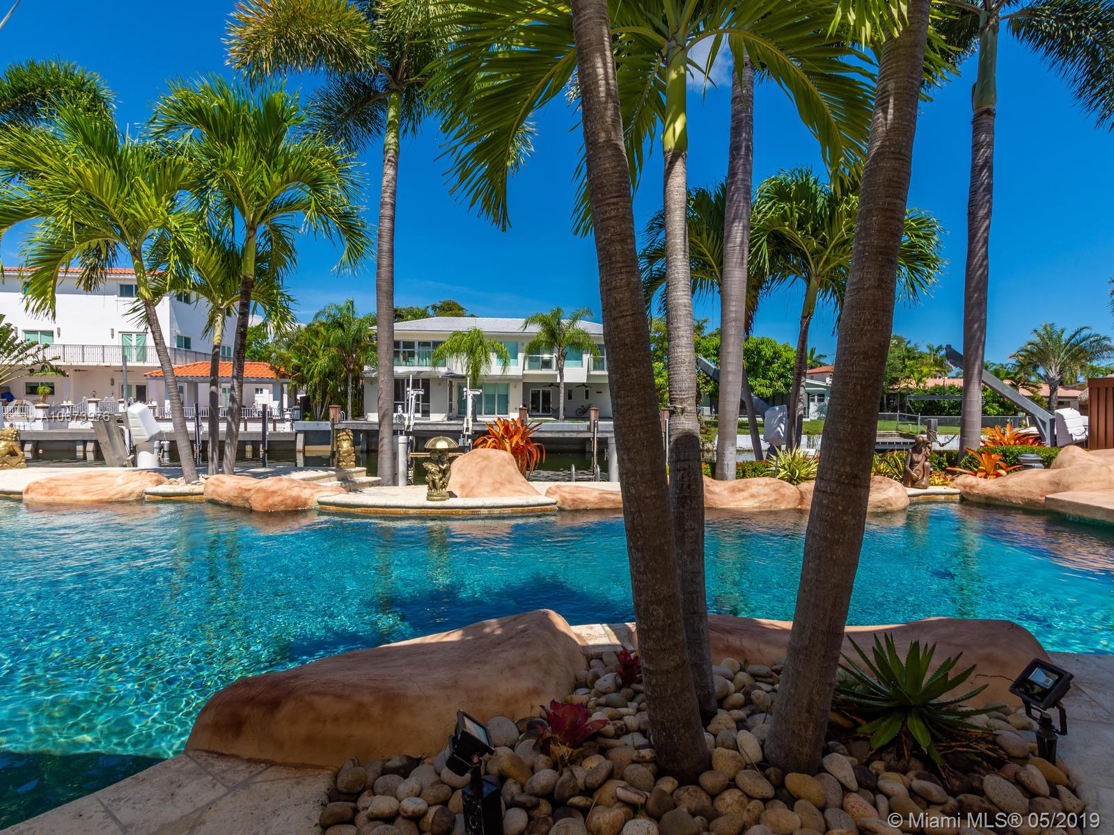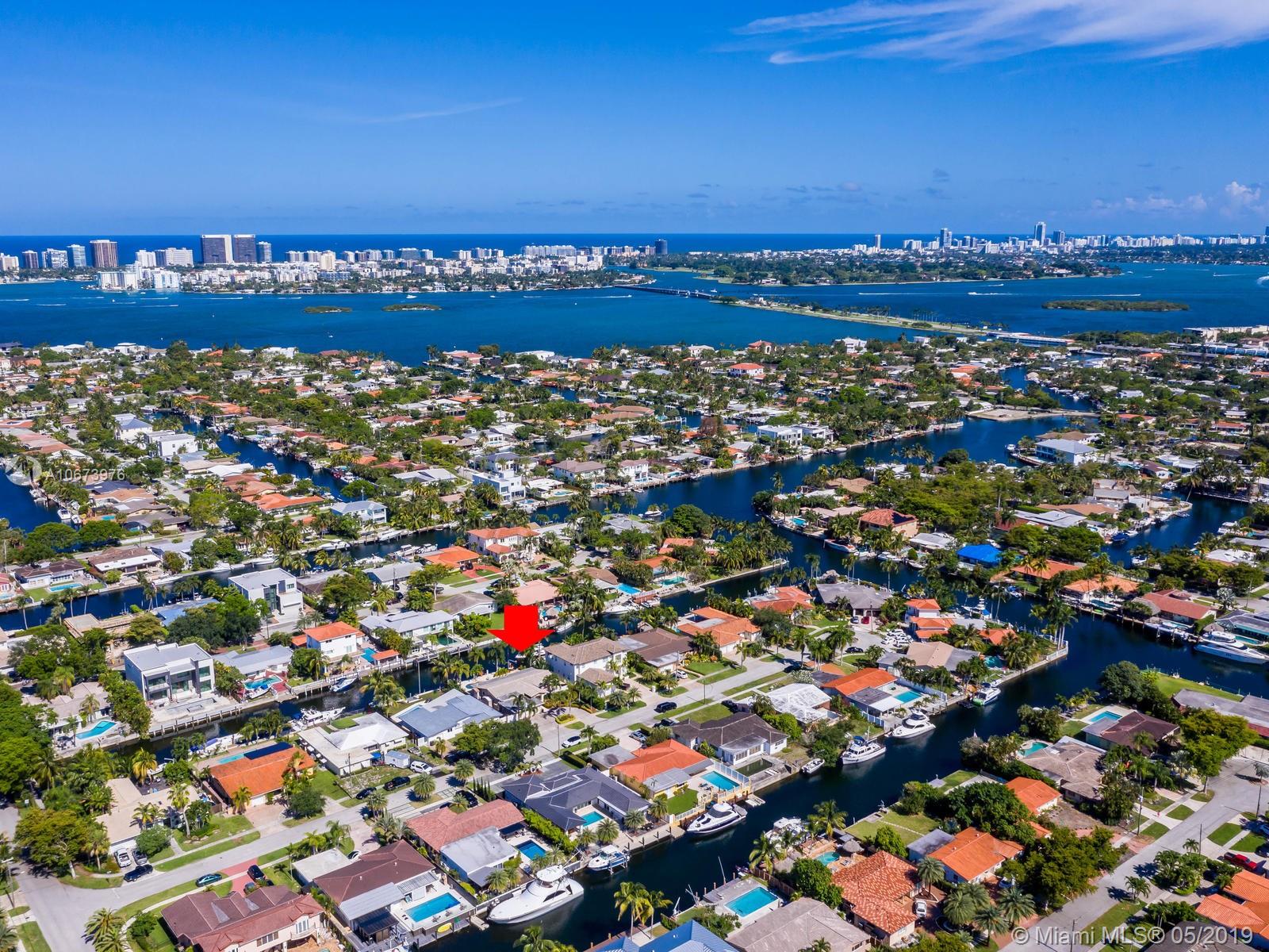 Stunning waterfront home located on a quiet cul-de-sac in the exclusive 24 hour guarded Keystone Point. This beautiful 3 bed/2.5 bath + den home features impact windows/sliding doors to provide maximum light with views of pool and waterways throughout. Inside you will find an open gourmet kitchen with plenty of counter space featuring Sub-Zero and Wolf brand appliances. Home also includes HD camera system, air conditioned 2-car garage, newly installed purified water softener system and california closets. Step outside and enjoy the large covered patio overlooking a one of a kind oversized custom pool. This boater’s dream home offers 75 ft of dock space and includes a boat lift on an ocean access canal with no bridges to the bay. Close to Bal Harbour, beaches and much more.