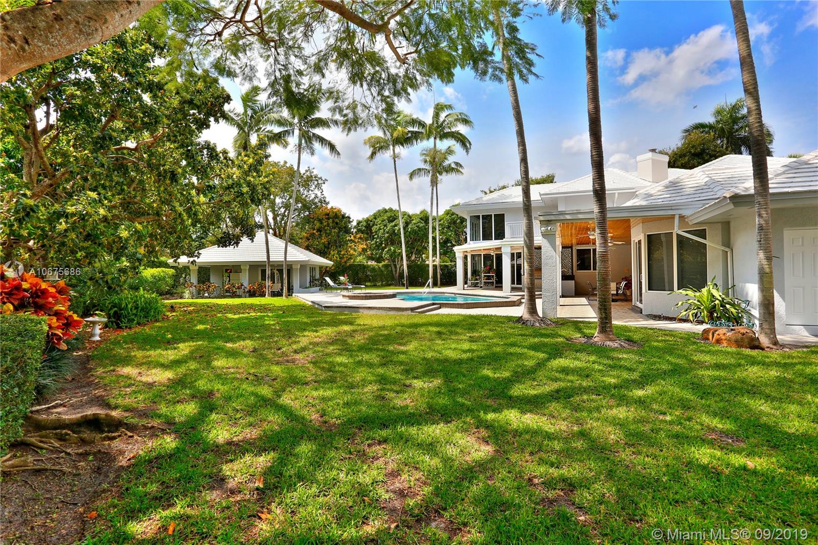 Sited on almost a full acre in Pinecrest, with a flag lot to provide the ultimate in privacy, this pristine estate is located in a great school district and is ready for immediate occupancy! The biggest bonus with this property is the beautiful 1b/1b guest house. The main house is 6 bedroom, 6.5 bathrooms and has soaring ceilings, foyer entry, energy efficient LED lighting throughout, pool with spa, wood burning fireplace, large utility room, beautiful open kitchen with breakfast area, formal dining room, spacious patio with built-in barbecue, basketball court, impact windows and doors, new roof with 5 year warranty remaining, and 60K generator with underground propane tanks that runs the entire house. Bring your most discriminating buyers. Easy to show, listed under appraised value!