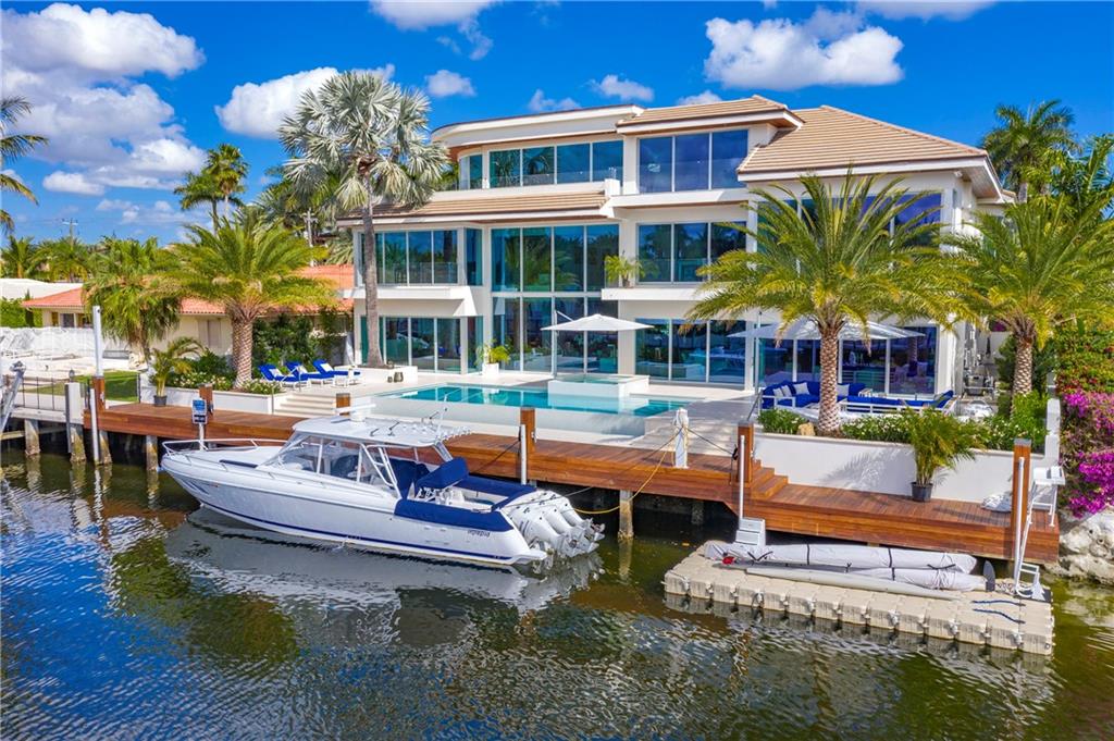 Custom ultra-modern 3 story masterpiece w/100' of WF on a wide canal. Just minutes to the inlet w/ Intracoastal views from 2nd & 3rd levels! Gourmet kitchen with top-of-the-line appliances. High-end finishes & features throughout - Ralph Lauren fixtures, custom woodwork, wine room, whole house generator, gym, elevator, theater, smart home security & automation systems. 3rd-floor entertainment space w/ wet bar & breathtaking views of the Intracoastal & downtown Fort Lauderdale. Immense master suite w/ sitting area, fireplace, water views & over-sized luxurious master bathroom. Private Harbor Beach Surf Club with 300 ft of beachfront & private marina membership available.