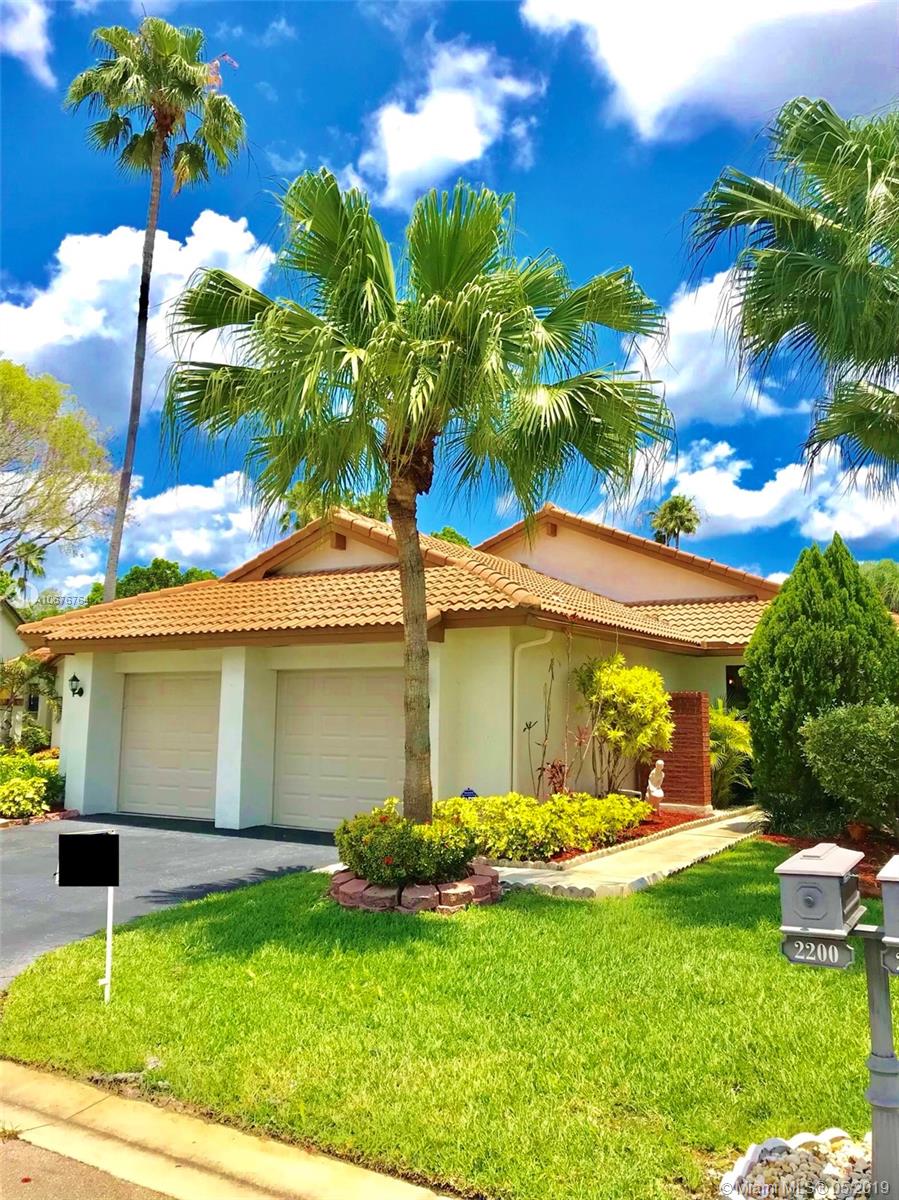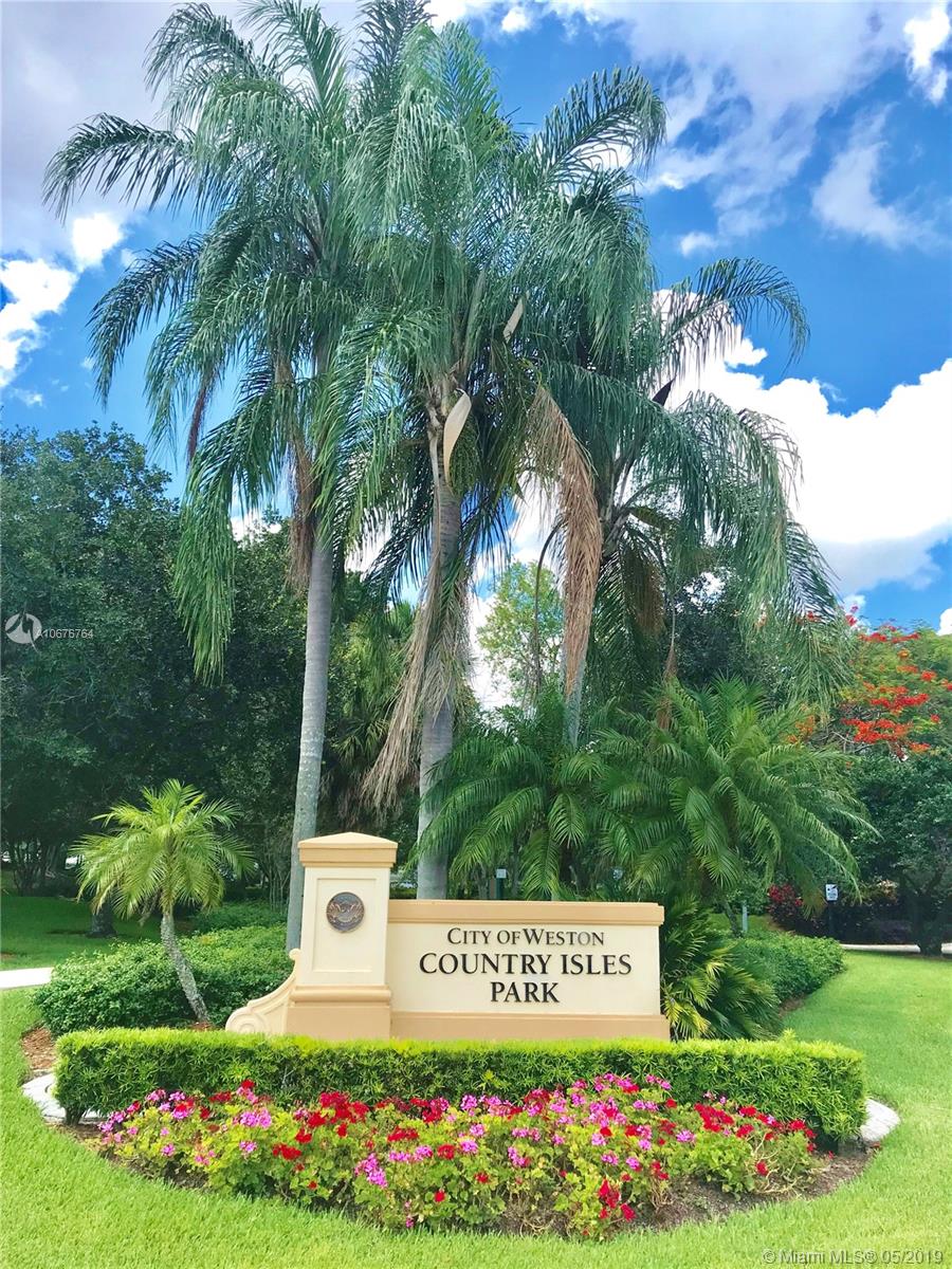 Wow! rarely available this beautiful spacious one story home on cul de sac is ready for you, right in the heart of Weston, enjoy the beauty of living in country isles with its luscious landscaping and gorgeous parks, this home has 3 large bedrooms with plenty of closet space and two full bathrooms, open living and dining areas with skylight, relax and enjoy yourself on a huge 400 sqft. covered patio ideal for entertaining guests and family as well as a back yard wood deck to enjoy your BBQ's. All windows have Accordion Hurricane Shutters and garage and front door hurricane rated as well. Association fee includes lawn maintenance, sprinklers and community pool. Newer Roof and A/C. Easy to show!