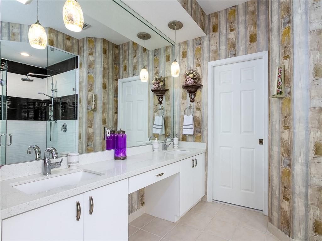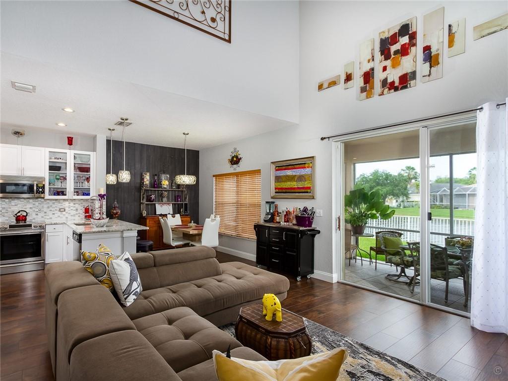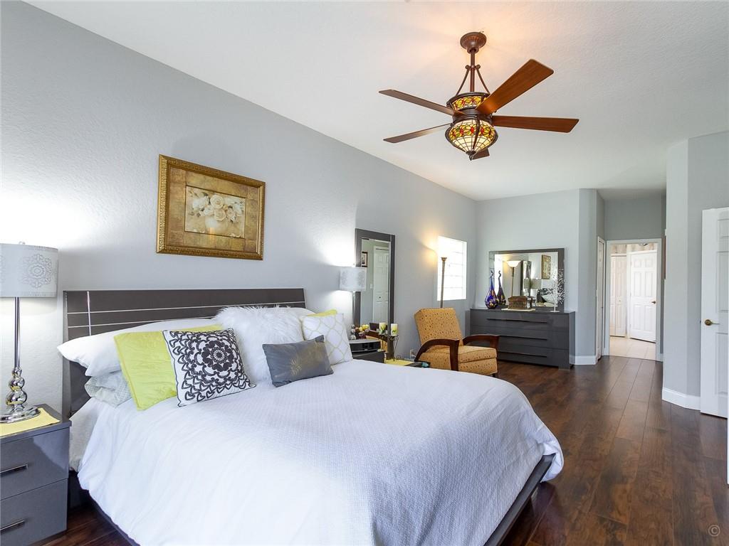 WATCH THE SLIDESHOW. Contemporary Model perfect waterfront home in a prestigious gated community. Spectacular water views, screened & tiled patio, fenced yard, upgraded landscaping and accordion shutters. Big open floorplan, gorgeous wood flooring on the entire 1st floor, vaulted ceilings, great room, designer kitchen w/snack bar, breakfast area, custom cabinetry, granite, LED lighting, SS appliances include a double convection range. 1st floor master suite w/sitting area, his & her walk-in’s, all bathrooms remodeled. Master bath features floor to ceiling frameless glass shower enclosure w/rain head, body jets & hand sprayer. 4th bedrm currently a large loft, but can easily be converted back if buyer so desires. The 5 TON 16 SEER AC replaced in 13, garage door opener new, the list goes on.