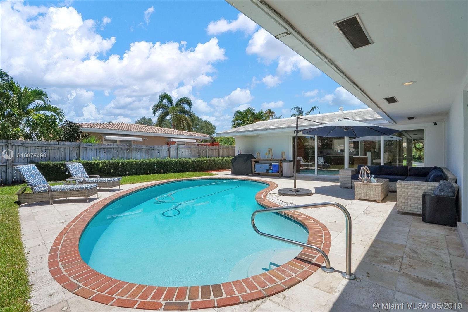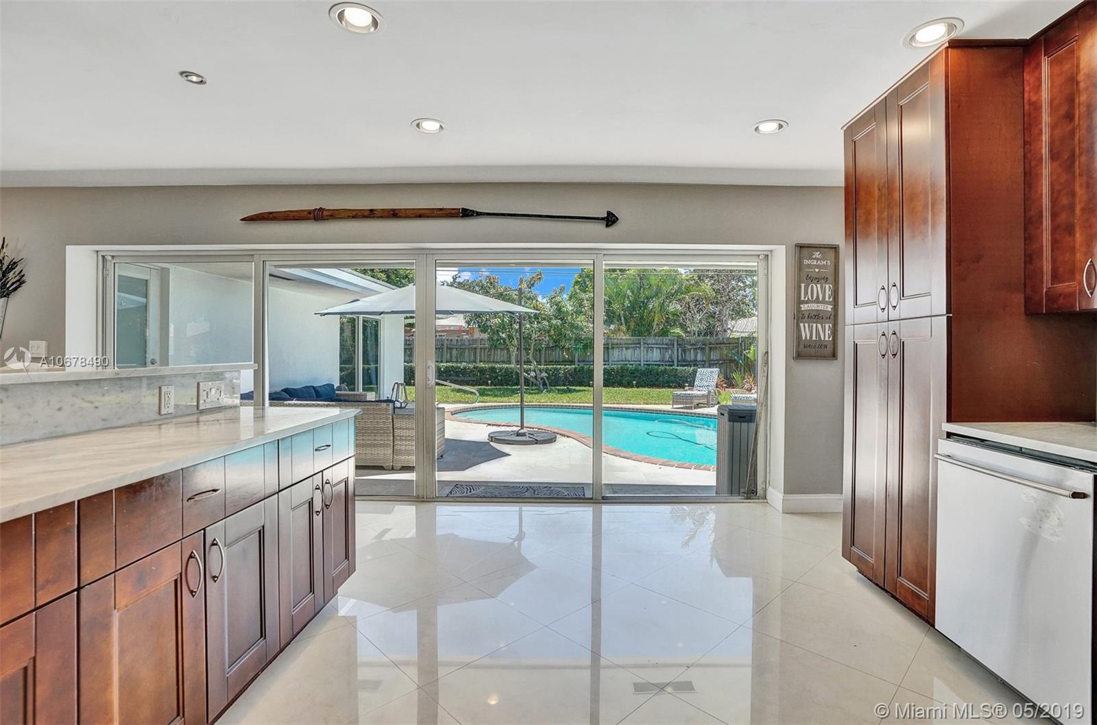 Among the most beautiful interiors in Imperial Point. Striking 3/2 (plus office/den) open floorplan home. All porcelain tile. Near Imperial Point and Holy Cross hospitals. Spacious, bright, new huge open kitchen overlooking pool & garden. Fully fenced large back yard complete with pool, patio and fruit trees. Only 5 minutes to the beach. Full impact windows and doors, paved circular diveway, Huge back yard. Won't last long!