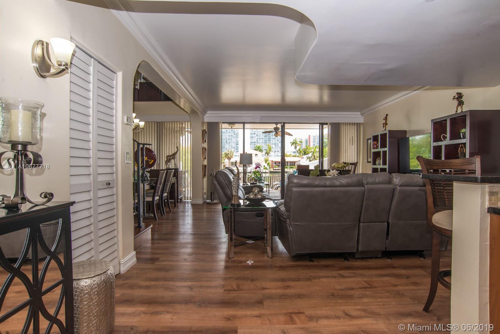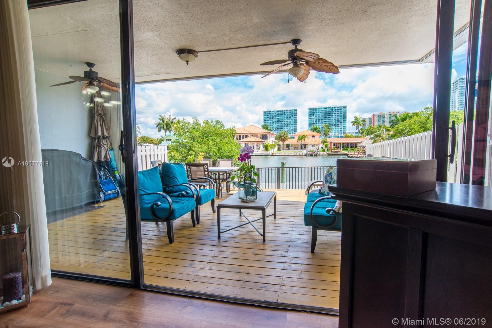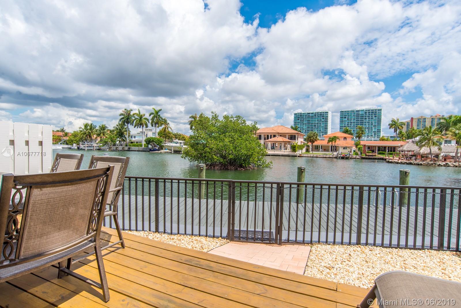 Private Island 24-hour guard gated Waterfront community. All remodeled 2 story Marina level unit w/ rear water views facing north. Open kitchen w/ counter bar, wood cabinets / black granite counter-tops w/ stone tiled back splash & all top-grade SS appliances. First floor w/ luxury vinyl wood floors & beautiful natural wood floors upstairs. Master bedroom with shower enclosure. Living room is spacious & has amazing views of the water and opens to spacious wood deck patio with privacy fence, gate to deeded boat dock and walking path that circles around the island. Just minutes to ocean access with no fixed bridges to Haulover Inlet. Lots of amenities. 4 tennis courts, racquetball court, basketball court, 2 heated pools & child play area. Walk to beach access just across Collins Ave.