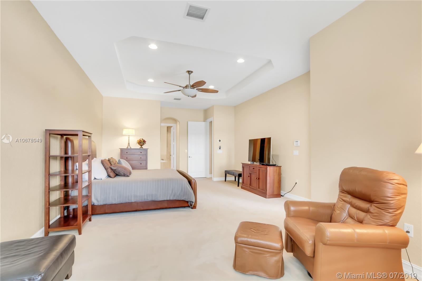 DON'T MISS THIS TURNKEY LAKEFRONT BEAUTY! Largest Engle-built 1-story model in Cooper City's highly sought-after, family friendly + gated ESTADA community w/ 24/7 guard! High-impact glass windows/doors; keyless entry locks; 10-13' volume, coffered + tray ceilings; upgraded kitchen w/ double ovens, 42" custom cabs + large island; triple-split floorplan; master w/ sitting area, custom walk-in closets, floor-to-ceiling travertine in bath, dual walk-in shower w/ body sprays + jacuzzi tub; Bose surround sound ceiling speakers; bay windows; plantation shutters; 3-car garage w/ Premiere Garage flooring, cabs, grids, racks + overhead storage; ADT cell guard; internet, cable + ADT monitoring incl. in monthly HOA fees. New ACs in 2014 & 2018. Furniture for sale separately. Schedule a viewing today!