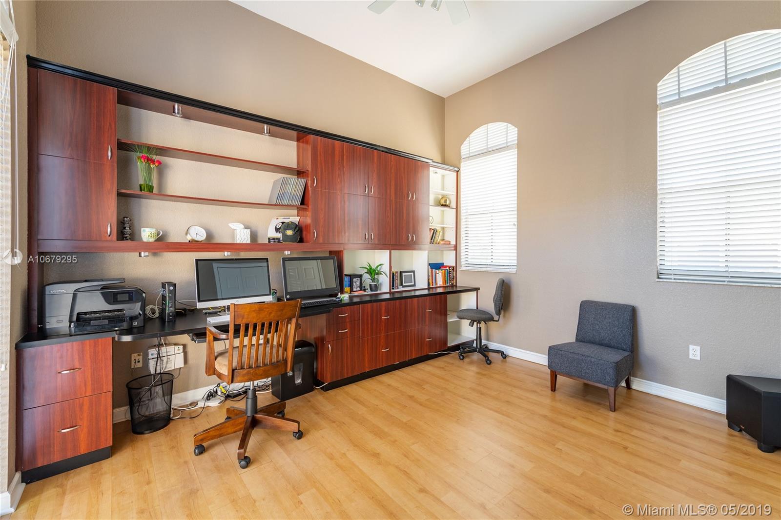 Beautiful one story courtyard home with attached private in-laws/Office/Guest room and full bathroom. Entertain your guest in the spacious courtyard. Split floor plan with tile and crown molding throughout and laminate in the bedrooms, Laundry Room, Accordion shutters, Tankless Water Heater, New A/C and new washer and dryer. Exterior Freshly painted last week. Fenced yard. Home is located in a guard gated community. Must see!