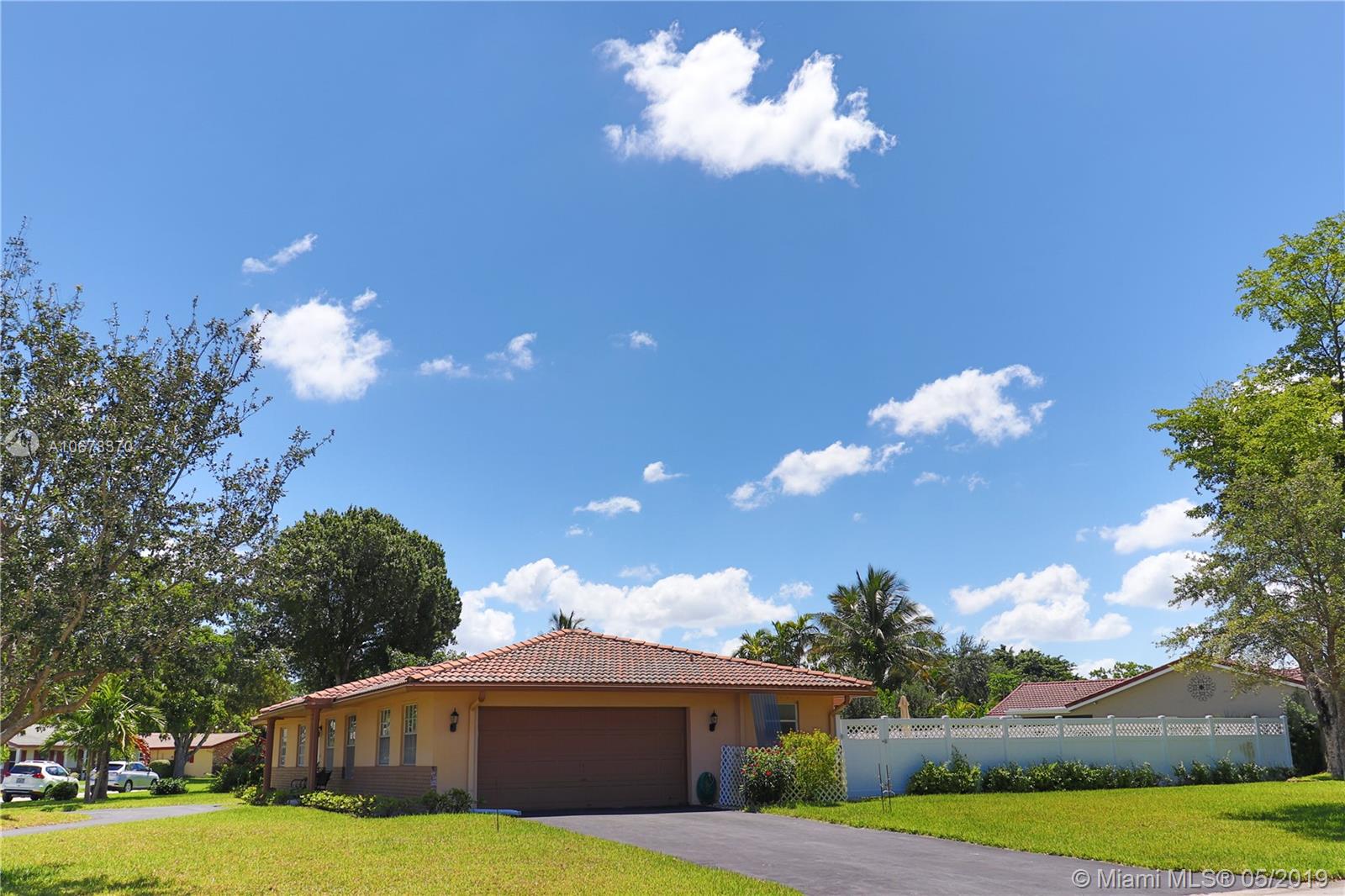 Located in the heart of Coral Springs. 4 bedroom / 2 bath with a corner lot of over 12,000 sq ft. Eat in kitchen area. Spacious bedrooms. Remodeled master bathroom. Tons of storage. Neutral tile throughout. NO POPCORN on ceilings. Water heater 5 years old. Air conditioner approx 7 years old. Home has gutters. Florida room has 2 sets of hurricane impact doors. This home is walking distance to shopping, recreation, and more! Excellent schools. Walking distance from elementary school. A backyard that is simply amazing and is entirely beautifully fenced. No HOA. Easy access to pool area from kitchen and Florida/family room. Home is well maintained with a great layout. Call today for more details. SELLER MOTIVATED! QUICK CLOSE!