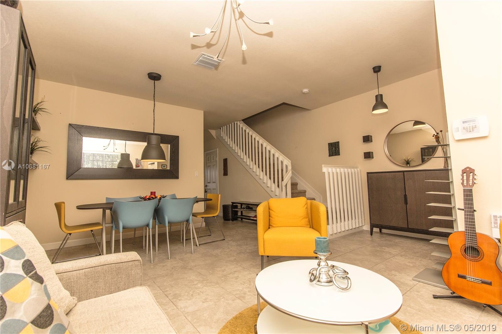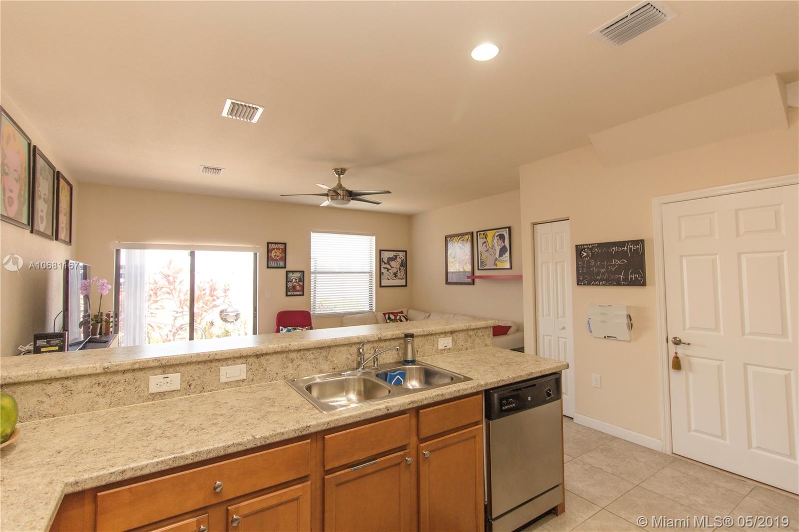 Stunning Features 3 Bedrooms 2.1 bathrooms. Gorgeous and exquisite open kitchen with beautiful counter and stainless-steel appliances, washer and dryer, walking closets, nice patio for entertainment with Accordion Huracan Shutters front & back, 2 assigned parking spots just in front of the house and plenty of guest parking, make this place a comfort Home. This gorgeous gated community features an amazing Clubhouse with a very elegant lobby, resort-style pool and sundeck, fitness center, playground, game room and much more. Ideal location with excellent schools, shopping and restaurants. AS-IS