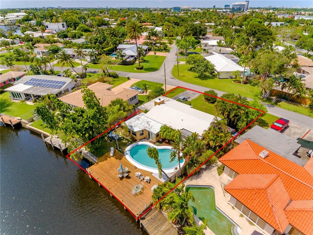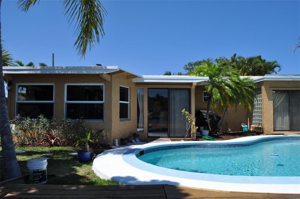 Location, Location, Location!! Almost 60 feet of waterfront located right in the middle of everything but tucked away in a quiet neighborhood. Most desirable South exposure from newly stained and oversized wood plank deck. Watch gorgeous sunsets while floating in your just resurfaced pool at the widest part of this secluded canal on the North Fork of the Middle River. Ocean access waterway! Renovated kitchen, newer appliances, mostly tile floors, some impact windows, wood burning fireplace. Family room overlooks pool, patio and water 10 minutes to the beach. Ready for your personal touches, room to expand the home. Close to Target, Movies, Restaurants, Angelo's Bakery Bar!!