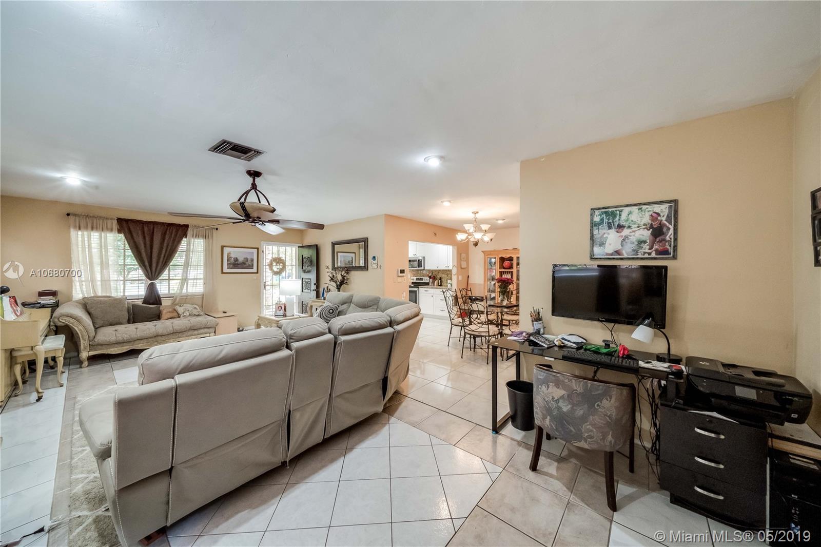 Beautifully updated, turn key, move in ready home, stainless steel appliances, updated/remodeled kitchen/granite counters, recessed lights, sliding pantry shelves, updated bathrooms, den area that can be used as a bonus bedroom, impact windows, floor tiles (20x20), camera/alarm system, large back yard (fenced), fruit trees (mangoes, lychee, longan, coconuts,ackee etc.). Within 15 minutes from the beach, close to I-95 and Turnpike, malls, hospital, restaurants, supermarkets (Walmart and Publix), schools, fire station (GOLDEN GLADES area). PRICED RIGHT, a must see.