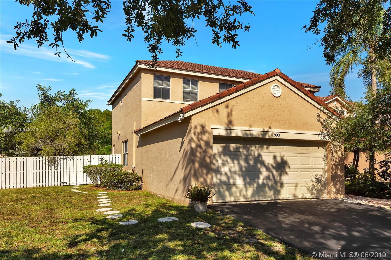 Rare Dartmouth model in The Falls. This 2-story 3/2.5 home sits on an amazing fenced corner lot over 10,000 sq.ft. with tons of room for a pool if so desired. Community pool with basketball and volleyball courts. All bedrooms upstairs with beautiful flowing downstairs living area. Great schools and quiet neighborhood. Stainless appliances. Priced to sell! Property comes with 1 year home warranty to Buyer.