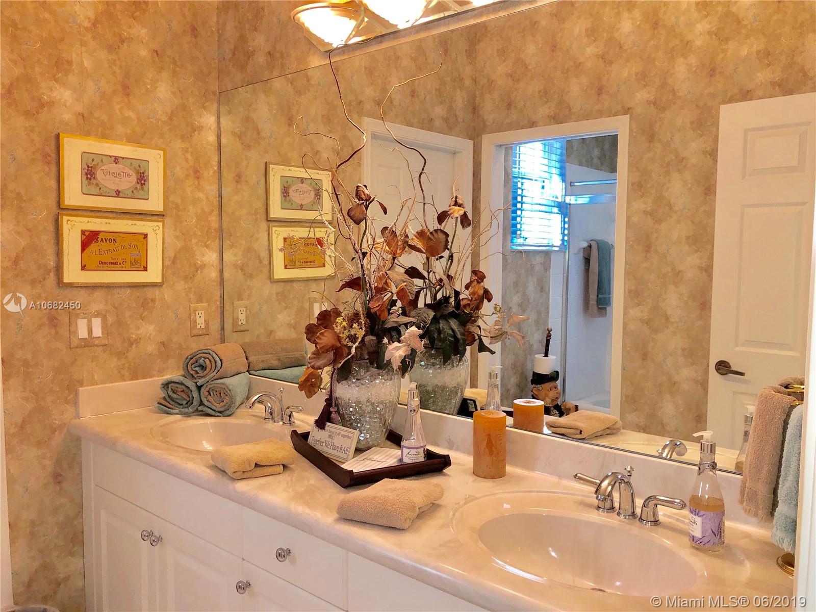 Original owners have maintained this elegant home with pride. Enter this spacious one story via your expansive circular paver driveway, lushly landscaped and enter through glass impact doors. Neutral diagonal coral stone tile flows through the living areas. Enjoy soaring ceilings and windows on private pool with paver patio, fully fenced and lushly landscaped. Split floor plan with private bedroom wing with wood floors, blinds and cabana bath to pool. Master bath with slider to patio, silloutte shades and luxurious master bath with roman tub, dual sinks. White kitchen with upgraded stainless steel appliances, center island and fashionable corian countertops. This home shows pride of ownership. Full accordion protection. Walk to community park.