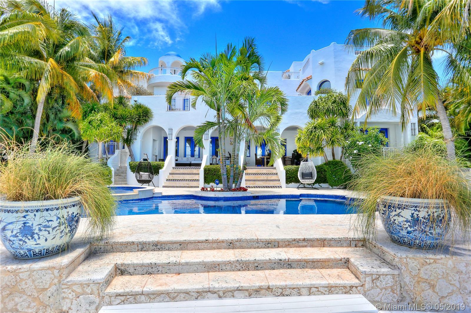 Views of wide water lagoon from this beautiful Mediterranean home located in the fabled Island of Key Biscayne. Sited on a half acre +/- lot with 7 bedrooms, 7 full baths and 2 half baths, it offers the ultimate destination for anyone seeking to accommodate either a growing or a multi-generational family. There is a spacious 2 bedroom guest house attached, located over an air conditioned 2 car garage. The sprawling roof-top patio is the ultimate spot for entertaining and enjoying fabled, Miami sunsets and city skyline views. There are an almost endless list of amenities: deep water dock for a large vessel, free-form swimming pool and jacuzzi, summer kitchen, gym, library, elevator, gourmet kitchen and family room overlooking the lagoon. Bring your most discriminating buyers!