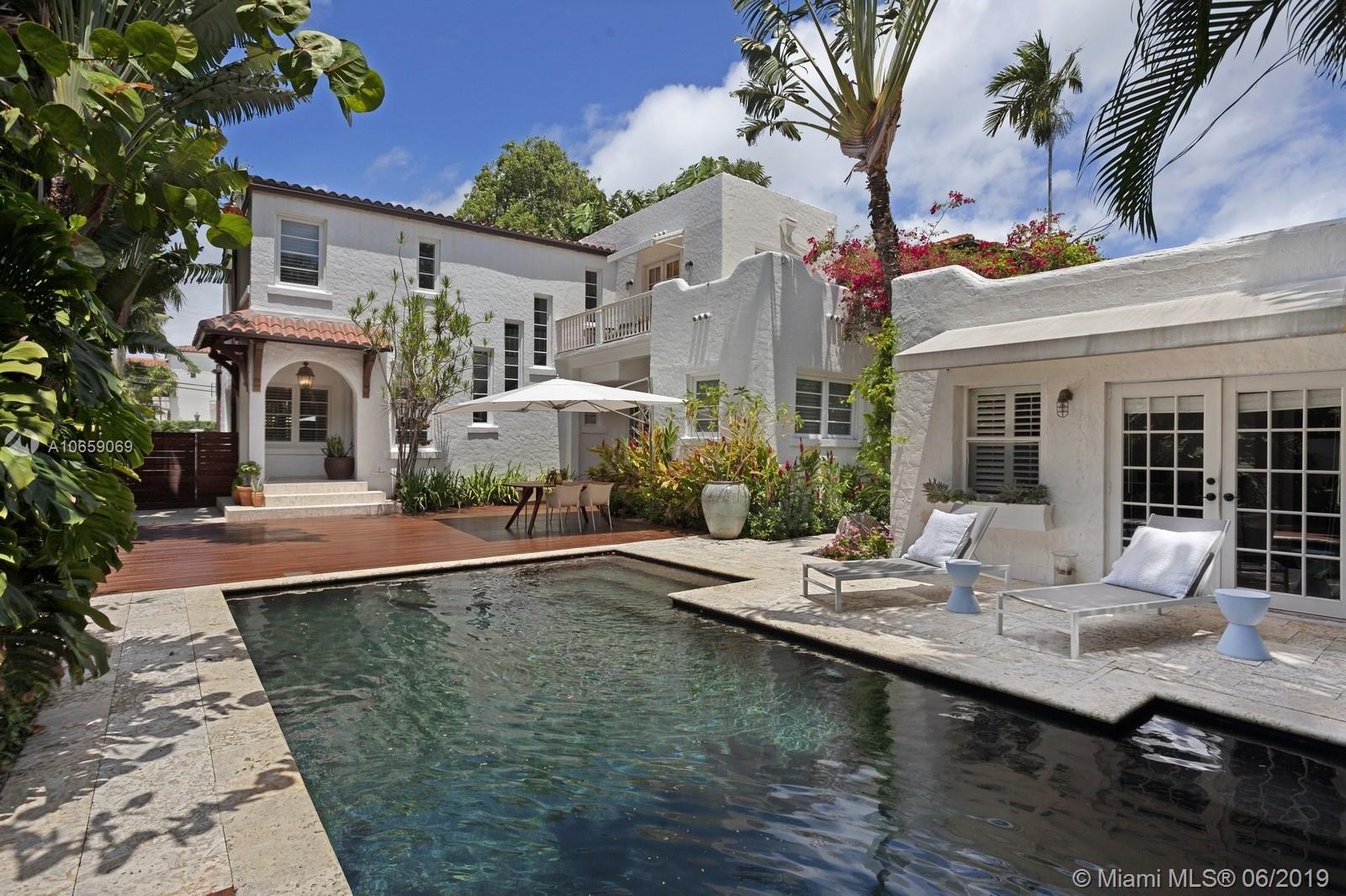UNIQUE & PRIVATE TROPICAL OASIS ON MIAMI BEACH'S PRESTIGIOUS NORTH BAY ROAD. IMPECCABLY RESTORED ARCHITECTURAL GEM FEATURES GOURMET KITCHEN W/ NEW COUNTERTOPS & CABINETRY, STAINLESS STEEL ISLAND W/VIKING GAS RANGE & HOOD, FORMAL DINING ROOM, OPEN & GRAND LIVING AREA W/ SOARING CEILINGS & SEPARATE DEN W/ARCHED WINDOWS OVERLOOKING PRIVATE GARDEN. BRIGHT & AIRY UPSTAIRS BEDROOMS FEATURE FRENCH DOORS LEADING ONTO ROMANTIC OUTDOOR PRIVATE BALCONIES. RELAX IN A SERENE & LUSH OUTDOOR SETTING SURROUNDED BY TROPICAL LANDSCAPING & NATIVE PALMS, BRAND NEW IPE WOOD DECK, POOL AREA & SPACIOUS PRIVATE POOL GUEST HOUSE FEATURING KITCHEN & BATH. DESIRED & CENTRAL CLOSE TO NEW TRADER JOE'S,FRESH MARKET, SUNSET HARBOUR/SOUTH BEACH SHOPS & RESTAURANTS. AS PER OWNER PROPERTY IS 5BED/4.5BATH.
