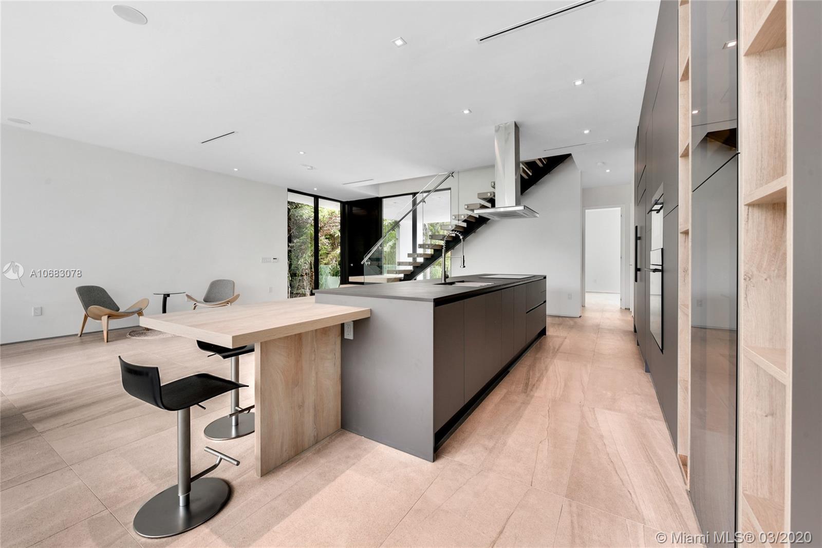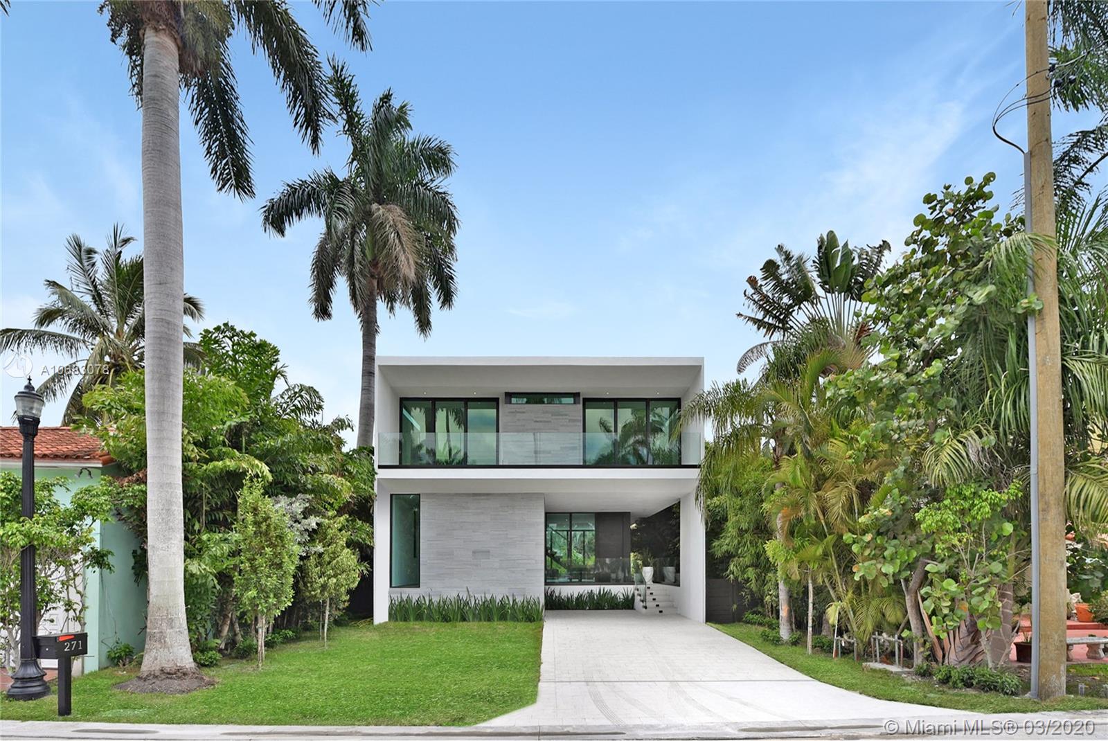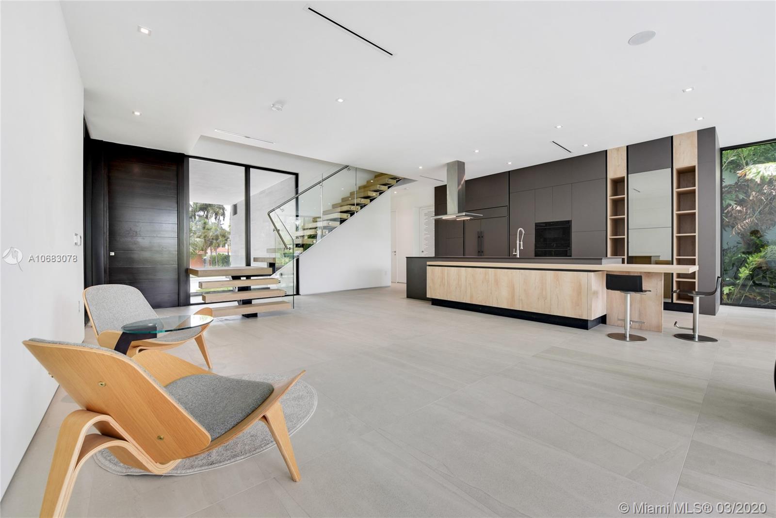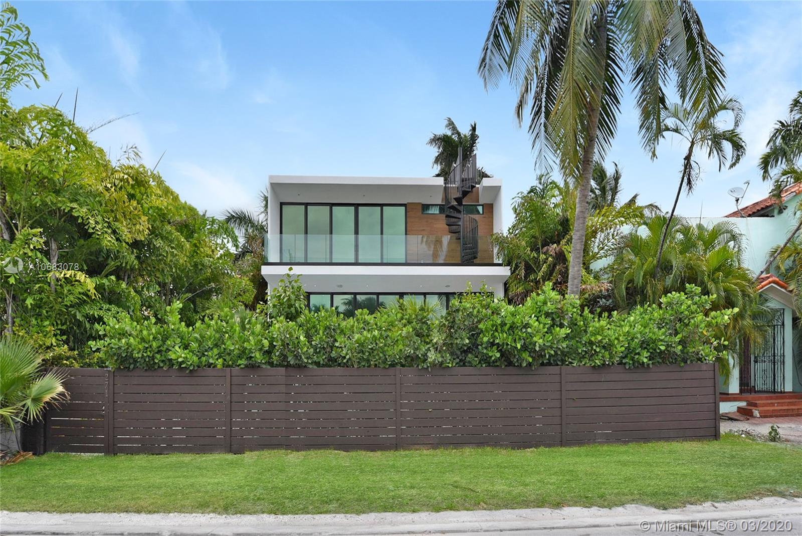 Brand new contemporary home on Palm Island, boasting artistic pavers, unique landscape design, with mature trees, wood accents, Louver doors, Veneta Cucina cabinets, custom surround/pre-wired smart home. Oak wood floating stairs with oversized living area expanding to the dining room and kitchen with state of the art appliances. Master en-suite with outdoor terrace overlooking water views and Government cut and on to cruise ships minutes away from all major airports, malls, downtown and Miami's financial district. Roof top terrace with 360 degree water views complete this beautiful home. The gated community has a Kids park, tennis and racquet ball courts, police patrol and no HOA fees