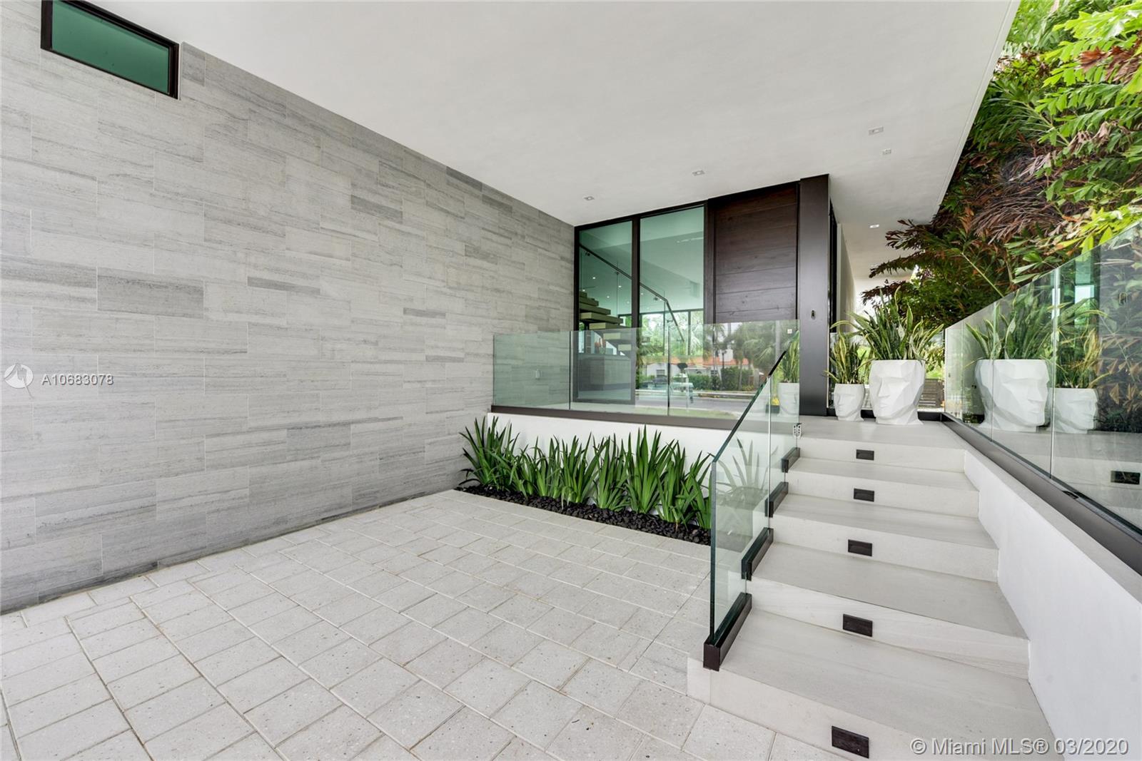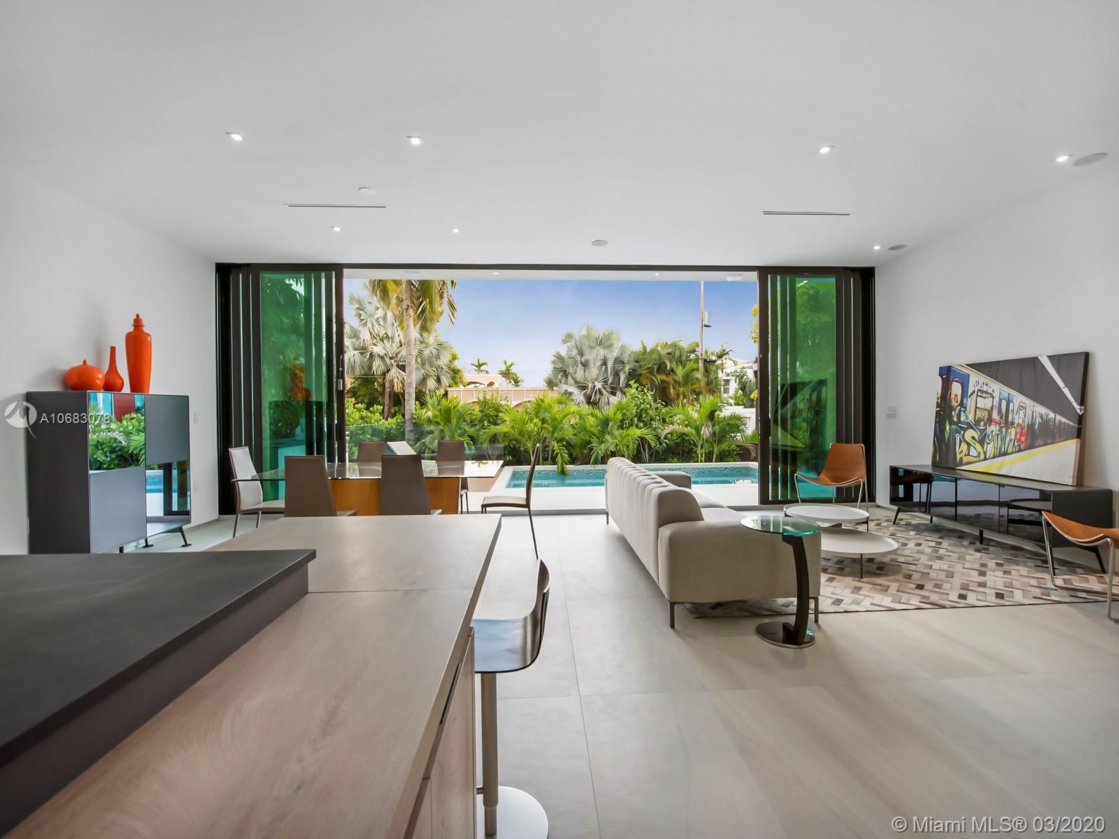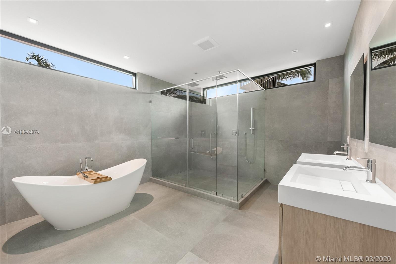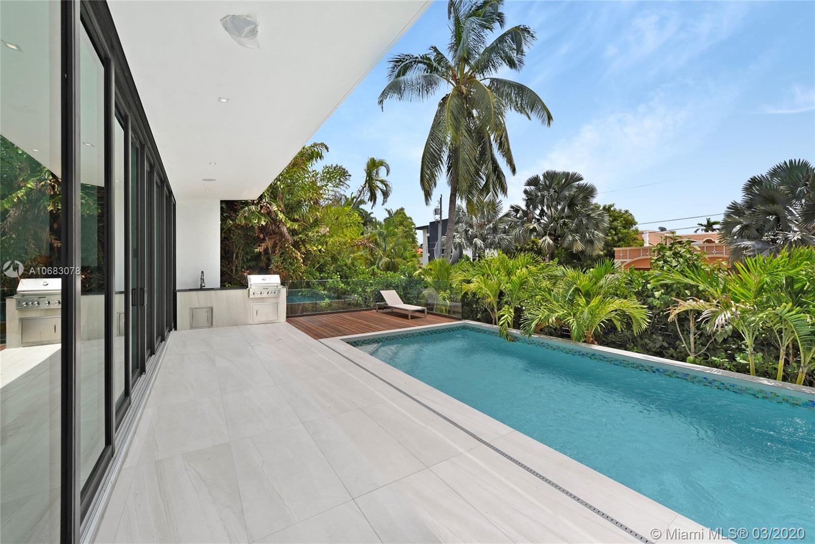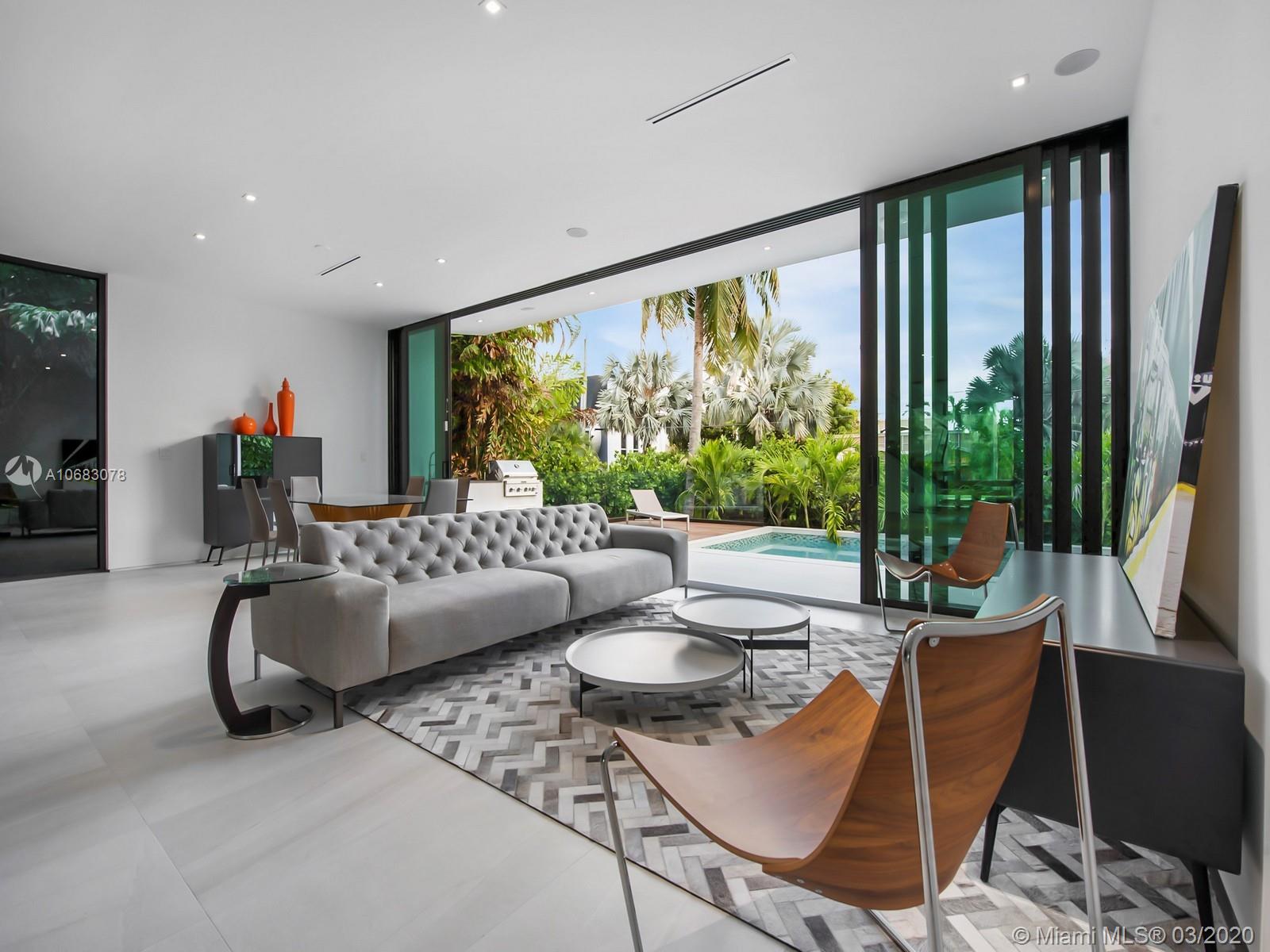 Brand new contemporary home on Palm Island, boasting artistic pavers, unique landscape design, with mature trees, wood accents, Louver doors, Veneta Cucina cabinets, custom surround/pre-wired smart home. Oak wood floating stairs with oversized living area expanding to the dining room and kitchen with state of the art appliances. Master en-suite with outdoor terrace overlooking water views and Government cut and on to cruise ships minutes away from all major airports, malls, downtown and Miami's financial district. Roof top terrace with 360 degree water views complete this beautiful home. The gated community has a Kids park, tennis and racquet ball courts, police patrol and no HOA fees