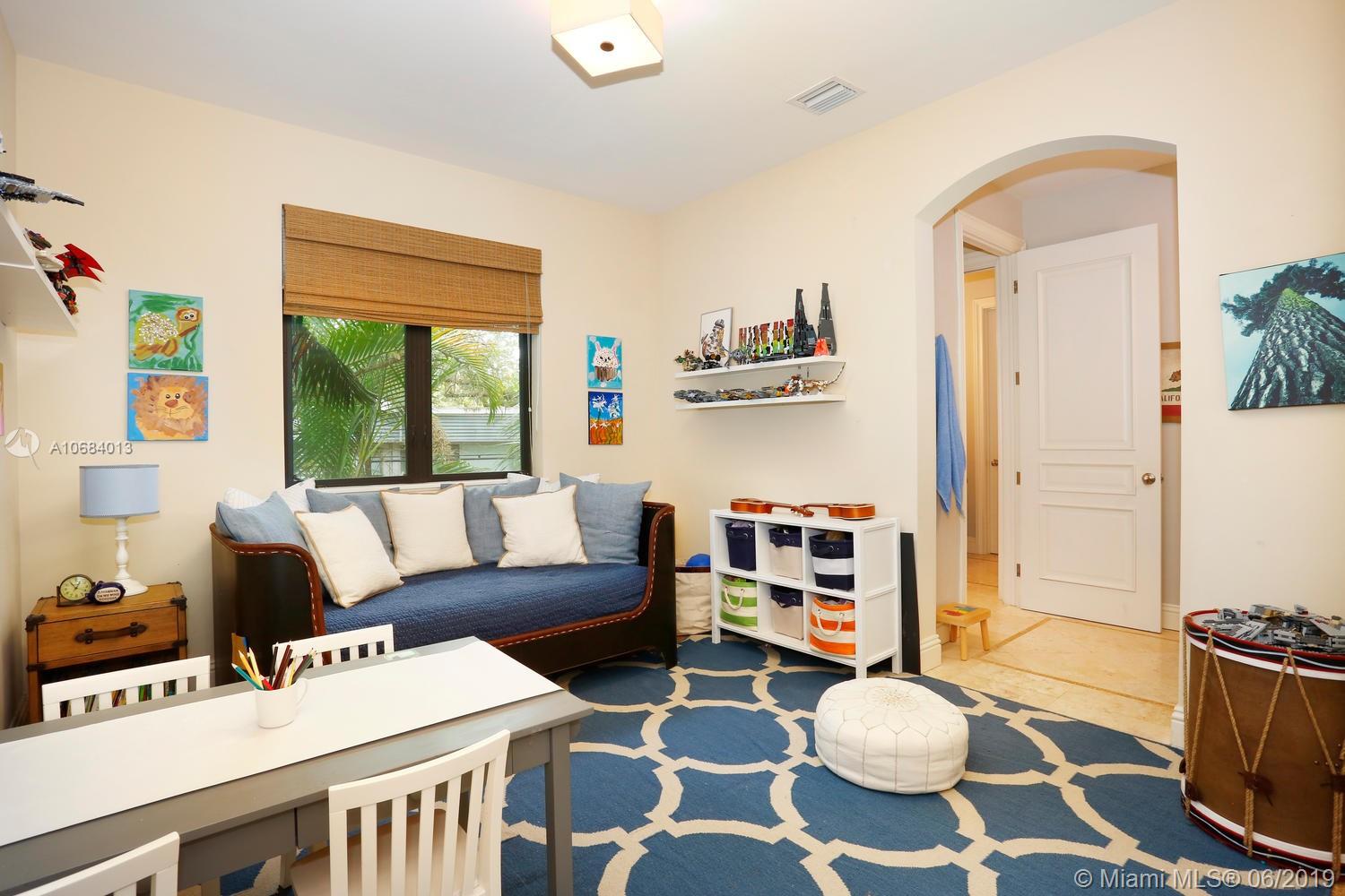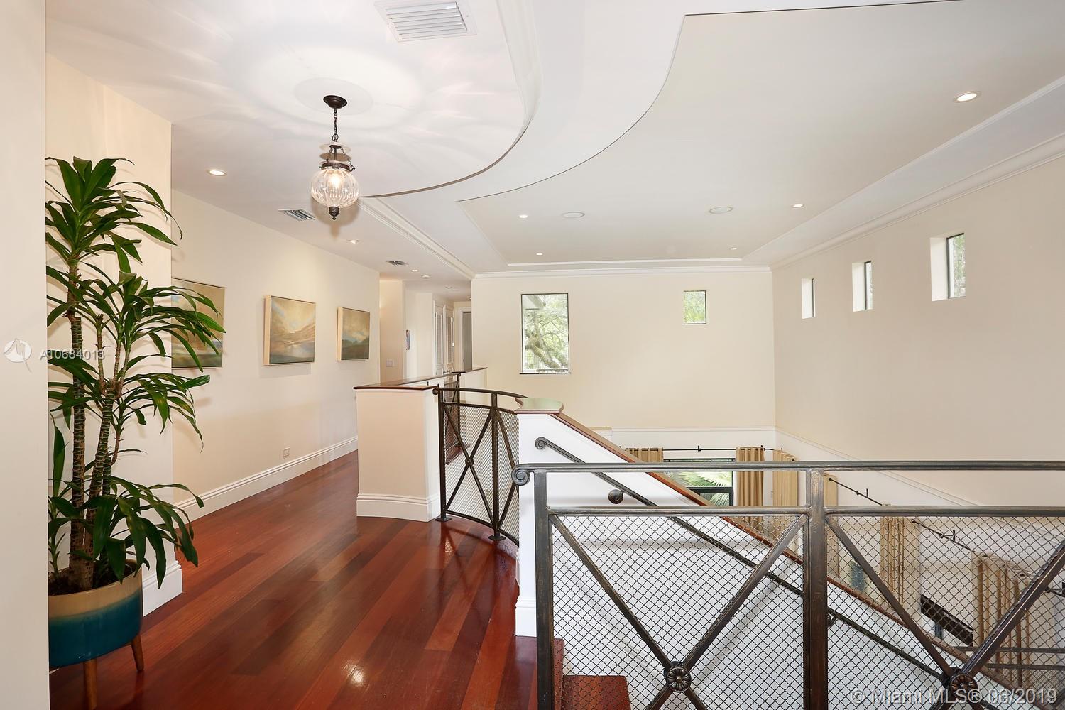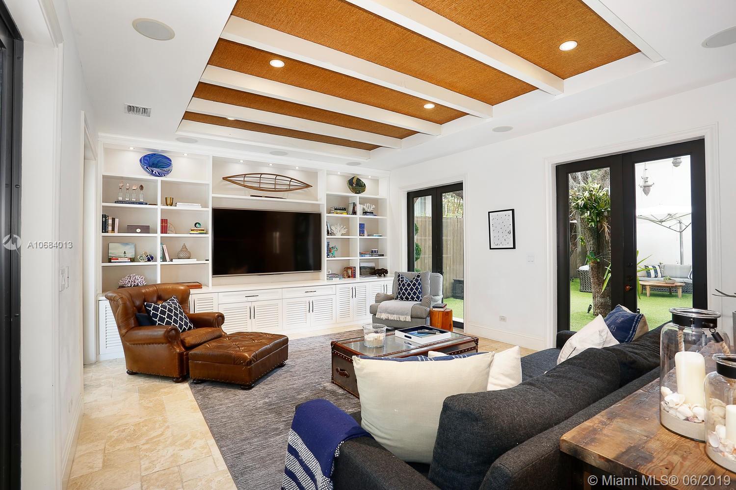 Ultra-private, walled & gated villa in prestigious North Coconut Grove. Walk to bayfront parks, marinas & to the Grove village. Located at one of the highest sea-level elevations in S.Florida. Stunning, light-filled interior spaces offer double-height ceilings, stone & hardwood flooring and a blending of classic architectural details w/a modern vibe. Expansive formal living, dining & family rooms. Spectacular custom kitchen features wood cabinetry, quartz countertops, center island & an adjacent breakfast area. Luxurious master suite includes an alcove sitting area, separate office, private balcony & stunning bath featuring soaking tub & frameless glass shower. Emergency generator connected to city gas. Lush interior courtyard + separate covered terrace overlooking the tranquil pool & spa