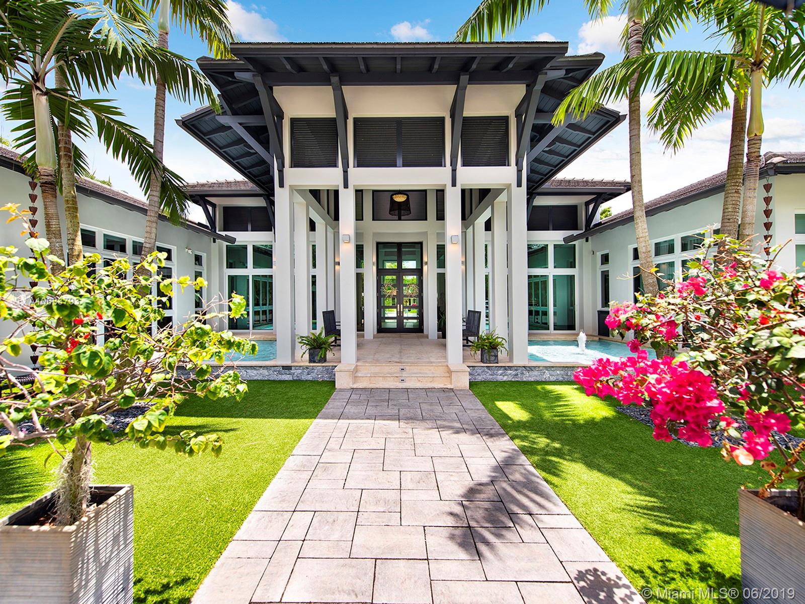 Tropical Oasis! The ultimate resort sanctuary! Superb, unique and artistic architectural design. Unique, exquisite with finest finishes! Stunning 24' soaring ceiling, luxurious designer flooring. Features stone, marble, and tile. Unparalleled quality with sleek modern and elegant elements throughout. Gorgeous and open vistas with every turn! Great floor plan. Fabulous gourmet chef's kitchen. Lavish master suite with sumptuous bath! Magnificent lush grounds with professional landscaping and Feng-Sui water features! Extraordinary blending indoor-outdoor living. Spectacular outdoor entertaining with inviting large heated pool, a fire-pit sitting area equipped with complete cabana and summer kitchen! Putting greens and much more! Truly one of a kind! Sensational!!