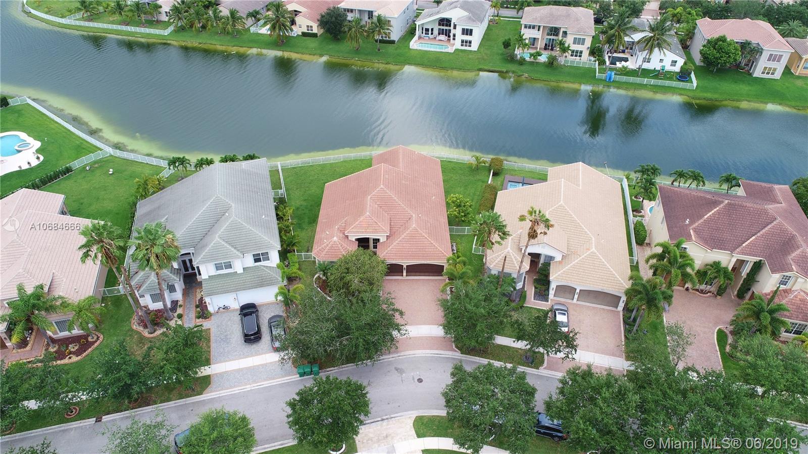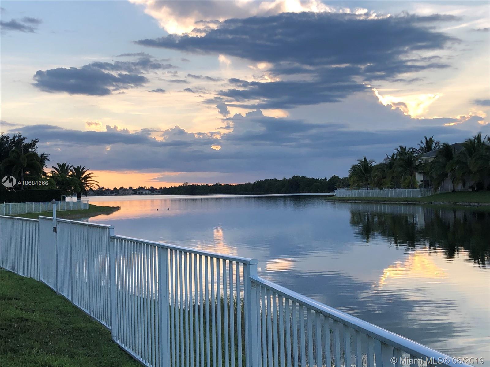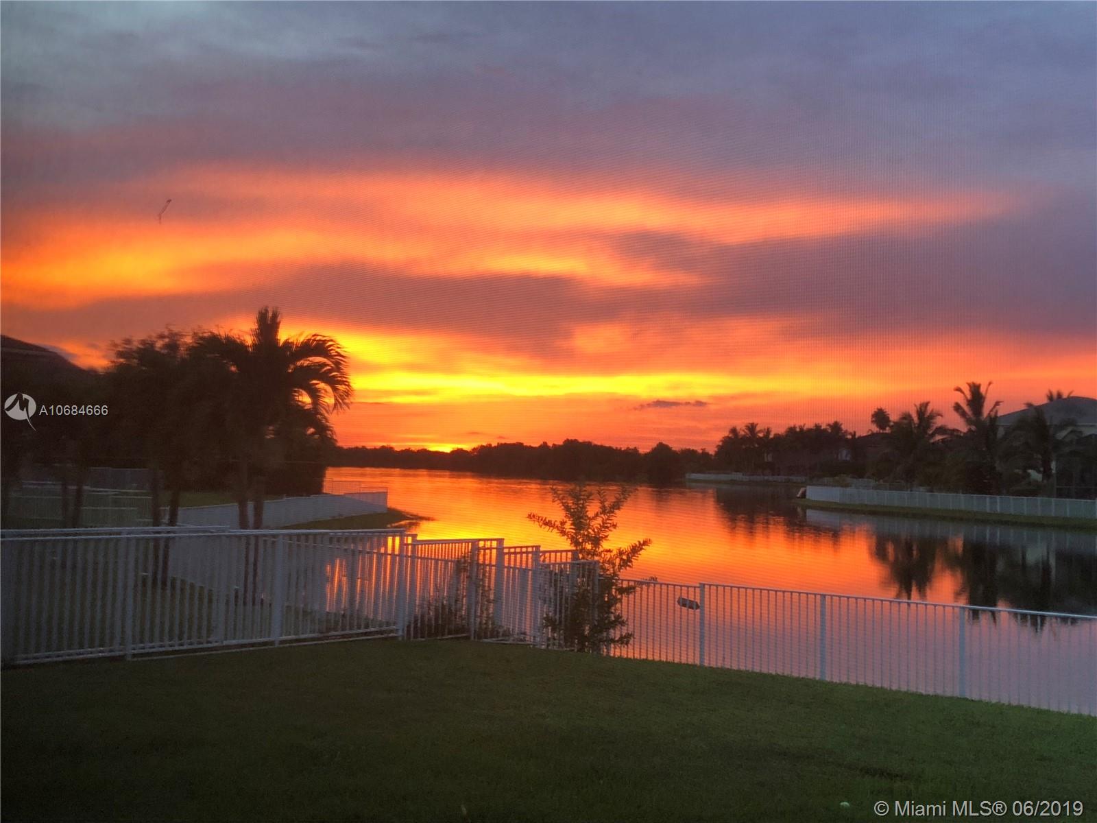 Beautiful lake front one story house in the prestigious community of Sunset Lakes. Over size lot. Open plan, high ceilings, large windows with plenty of natural light. 5 bedrooms with hard wood floors, 3 bathrooms. 2 bedrooms share a Jack-Jill bathroom. Large master bedroom with 2 walking closets. Master bathroom has his and hers sinks, jacuzzi tub. Formal dining room and living room, spacious kitchen with stainless steel appliances and granite counter tops. Big family room with a gorgeous sunset view over the lake, impact windows facing the lake, screened terrace, fence. Laundry room with sink and cabinets. 3 car garage. The Association fee includes basic cable, alarm and access to the club house that includes resort style pool, complete gym/sauna, tennis, basketball, and playground.