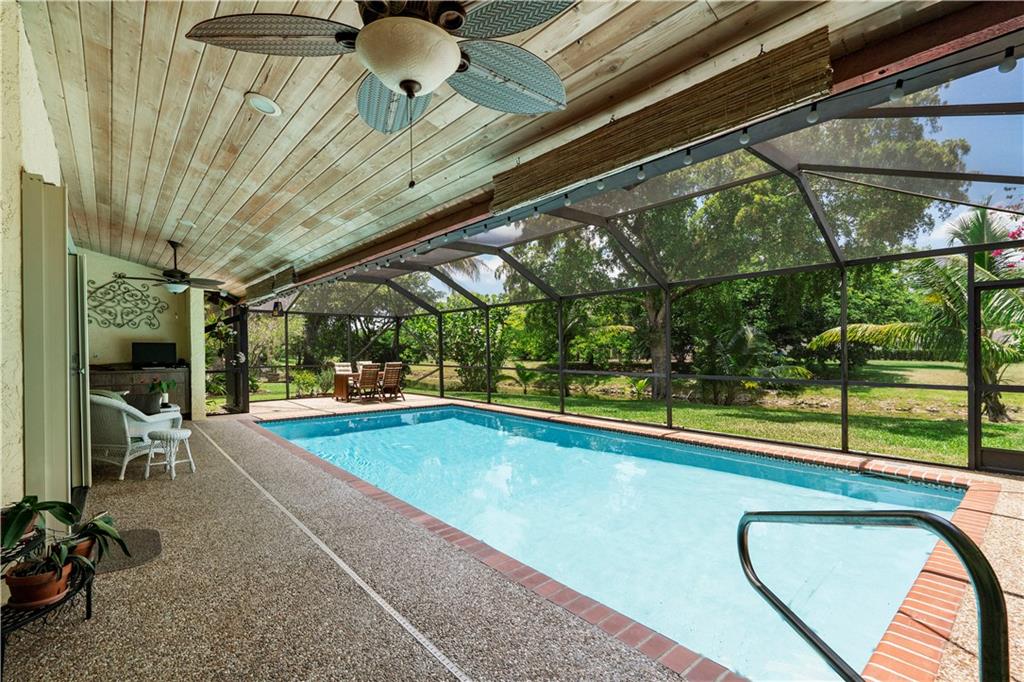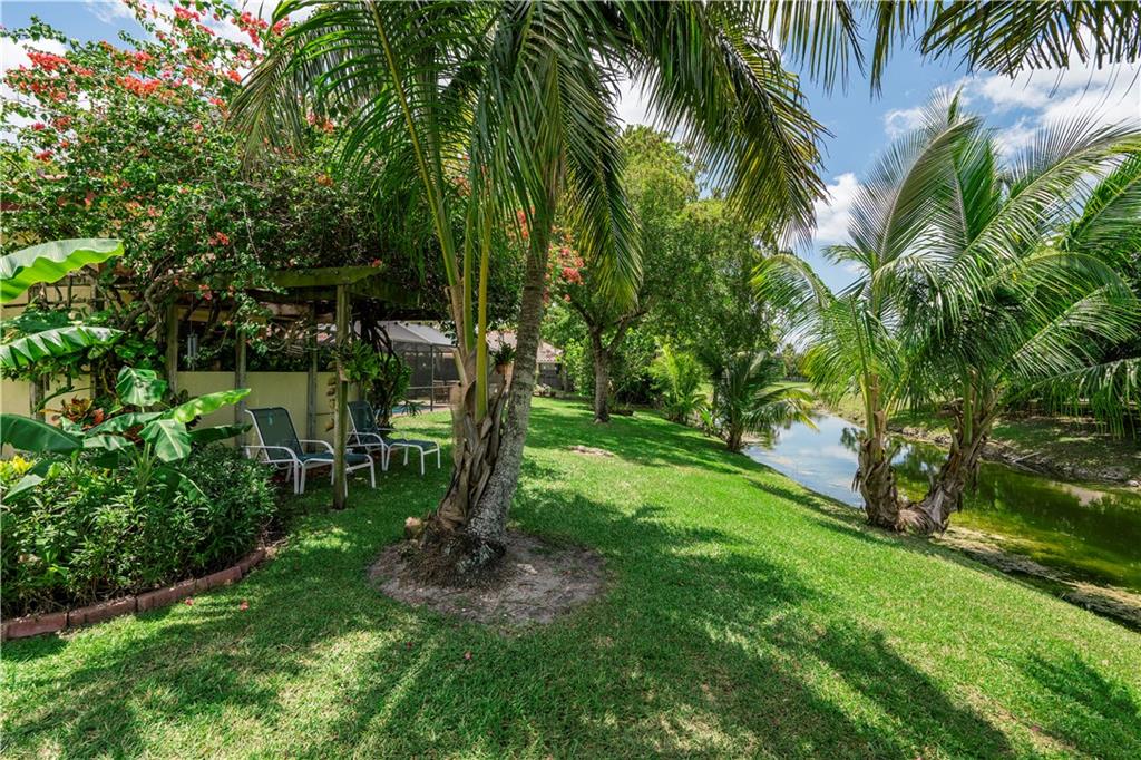 Premium well-maintained 4 bed/2.5 pool home in desirable Pine Ridge neighborhood. Fabulous private lot with lush landscaping on the water. Very open floor plan. Family room has a cozy stone fireplace. Open kitchen with eat-in area plus large counter bar area with Zodiac Quartz counters. Huge living room/ dining room area. 2006 Roof- heated pool- Accordion Shutters. Banana and Mango trees to enjoy. LOW HOA FEES. Easy access to Schools, shops, restaurants and expressway.