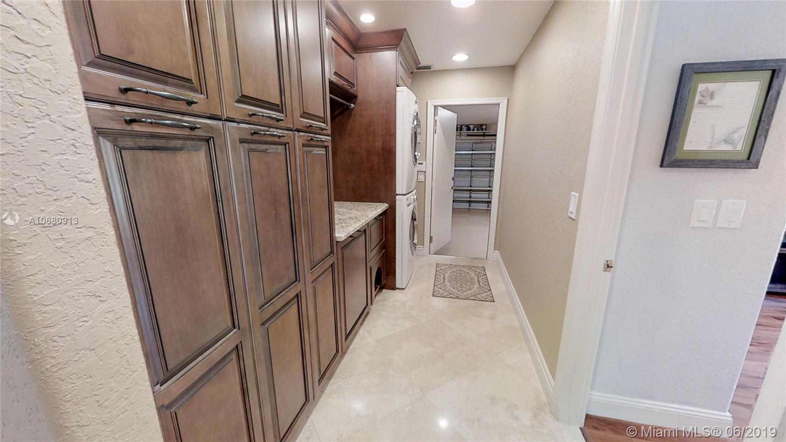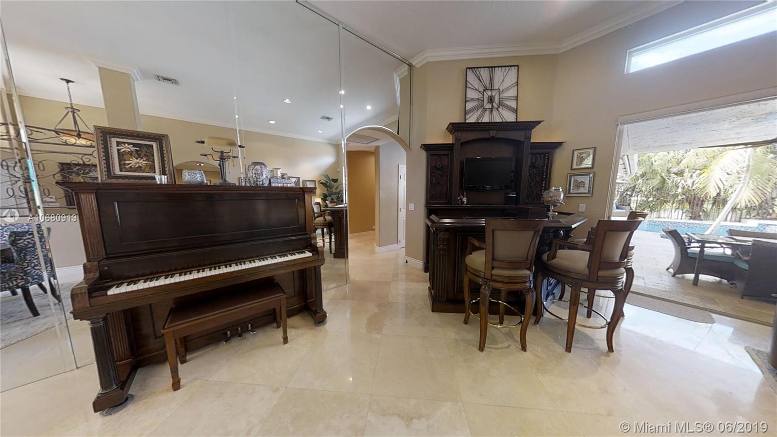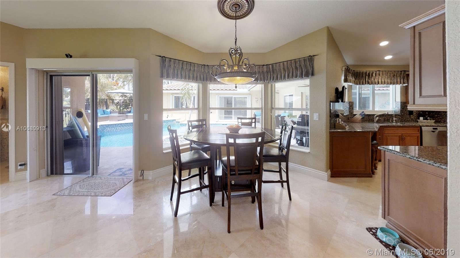 Beautiful and unique lake home with a pool in Sunset Springs. 5 bedroom, 3.5 bath where the 5th bedroom and 3rd full bath are in a full in-law suite with sitting area, kitchenette and separate entrance overlooking the pool. Updated kitchen with granite counters, large pantry and stainless steel appliances. All bathrooms are upgraded. Marble floors throughout the house living area. 2007 roof. Custom wood bar. Full of upgrades: impact windows & accordion shutters combination, power generator, recently resurfaced pool with salt system, LED recessed lighting, new water heaters, reverse osmosis water filtration system, widened driveway with pavers, camera door bell, sprinkler's water from the lake. Extra large corner lake lot across the community's play ground. A definite must-see!.
