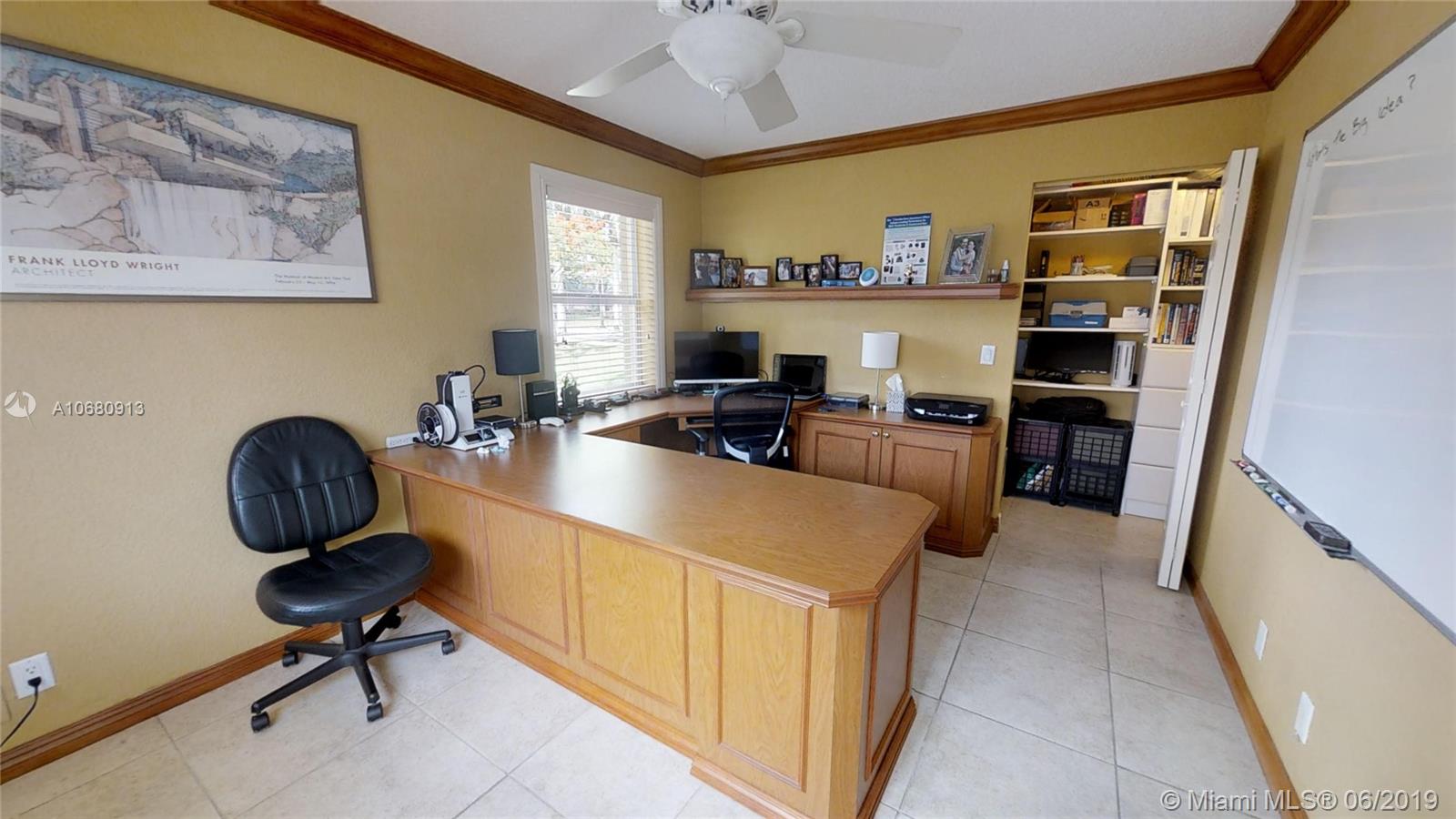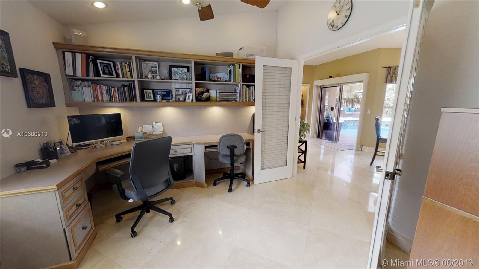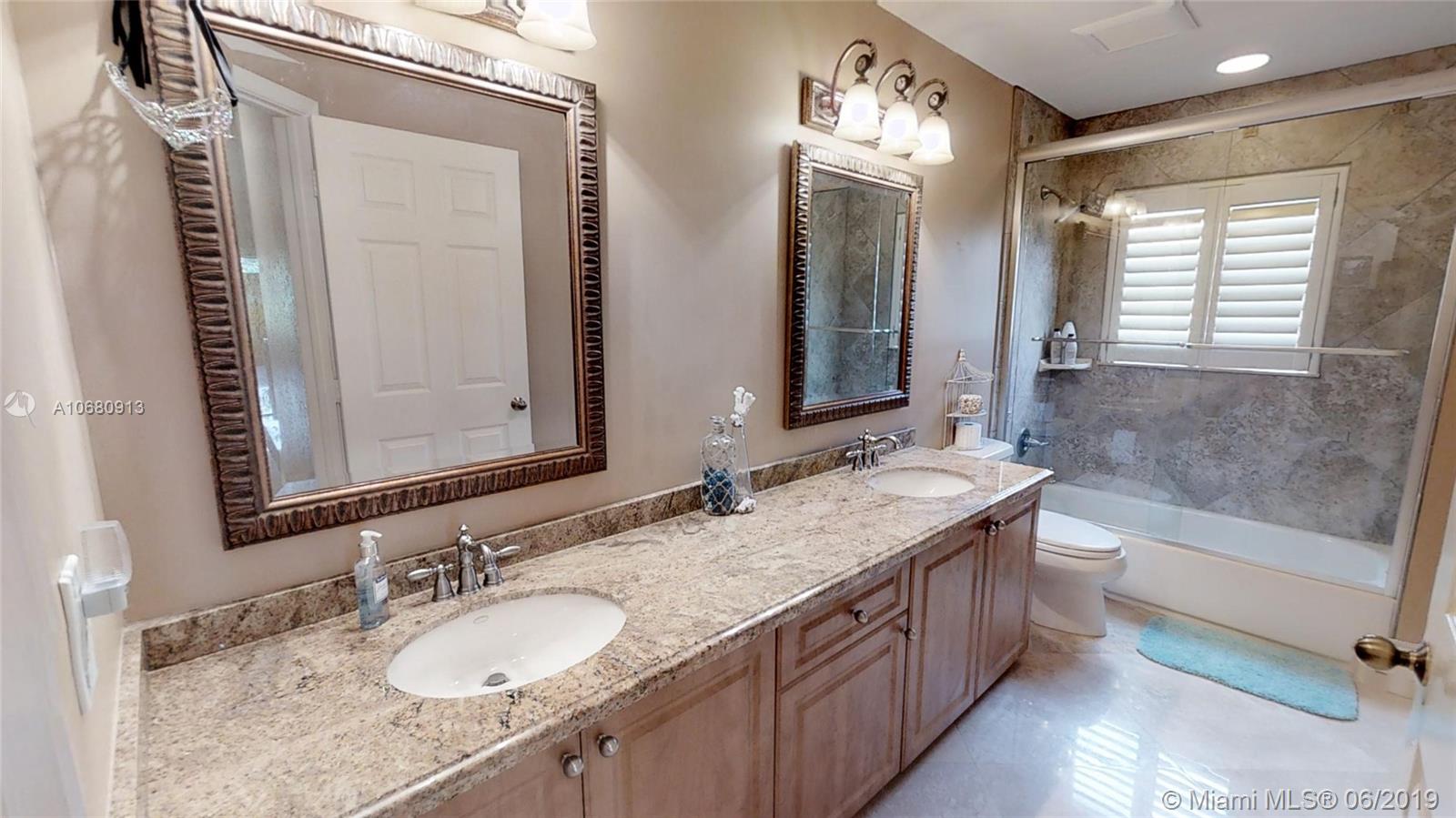 Beautiful and unique lake home with a pool in Sunset Springs. 5 bedroom, 3.5 bath where the 5th bedroom and 3rd full bath are in a full in-law suite with sitting area, kitchenette and separate entrance overlooking the pool. Updated kitchen with granite counters, large pantry and stainless steel appliances. All bathrooms are upgraded. Marble floors throughout the house living area. 2007 roof. Custom wood bar. Full of upgrades: impact windows & accordion shutters combination, power generator, recently resurfaced pool with salt system, LED recessed lighting, new water heaters, reverse osmosis water filtration system, widened driveway with pavers, camera door bell, sprinkler's water from the lake. Extra large corner lake lot across the community's play ground. A definite must-see!.