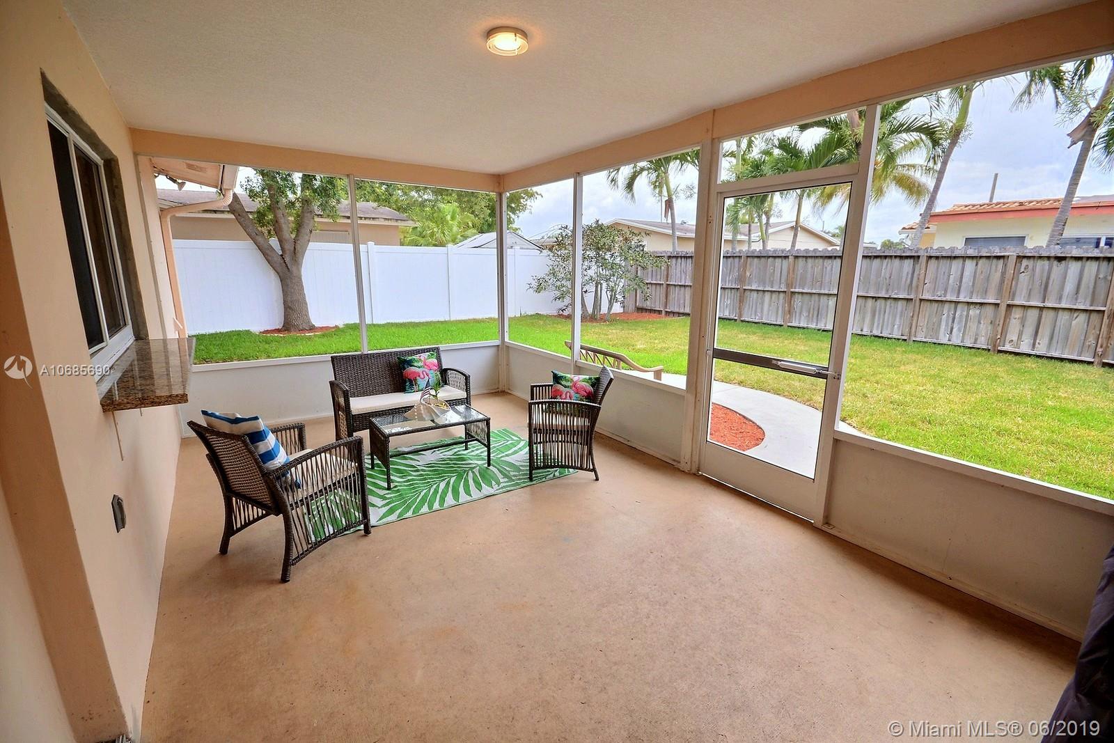 REALLY BEAUTIFUL HOME IN RAINBOW LAKES, PEMBROKE PINES FEATURES OPEN FLOOR PLAN, UPDATED KITCHEN W STAINLESS APPLIANCES, GRANITE TOPS, GORGEOUS FLOORS (NO CARPET ANYWHERE!!) NEW IMPACT WINDOWS & DOORS INSTALLED IN 2016 INCLUDING BIG FRONT PICTURE WINDOW. ELEGANT PAINT & FIXTURES. EXQUISITE MASTER SUITE W 2 WALK-IN CLOSETS & AMAZING NEW BATHROOM W DOUBLE SINKS & FRAME-LESS SHOWER. LOVELY CURB APPEAL W NEW PAVERS, ROCK PORCH & STONE FRONT; LARGE SCREENED-IN & COVERED PATIO ON FENCED BACKYARD W FRESH SOD; SPRINKLER SYSTEM & 2 CAR GARAGE. GREAT LOCATION NEAR SHOPS, RESTAURANTS & A FEW MINS FROM PASADENA LAKES ELEMENTARY.