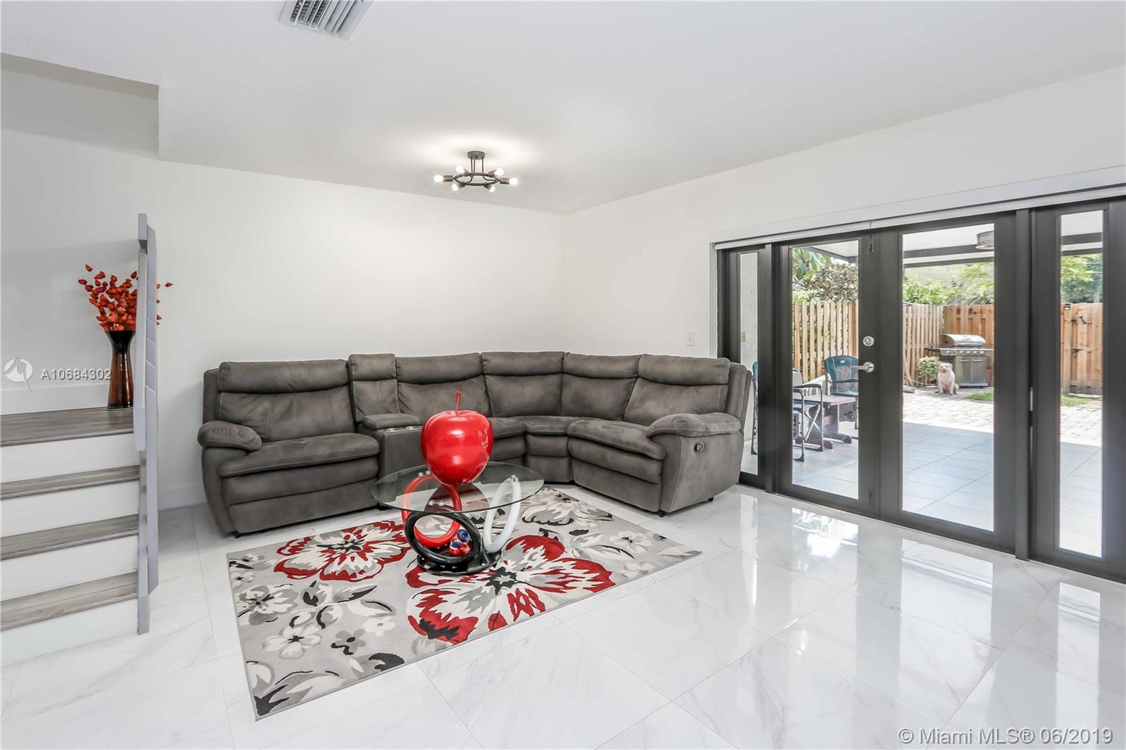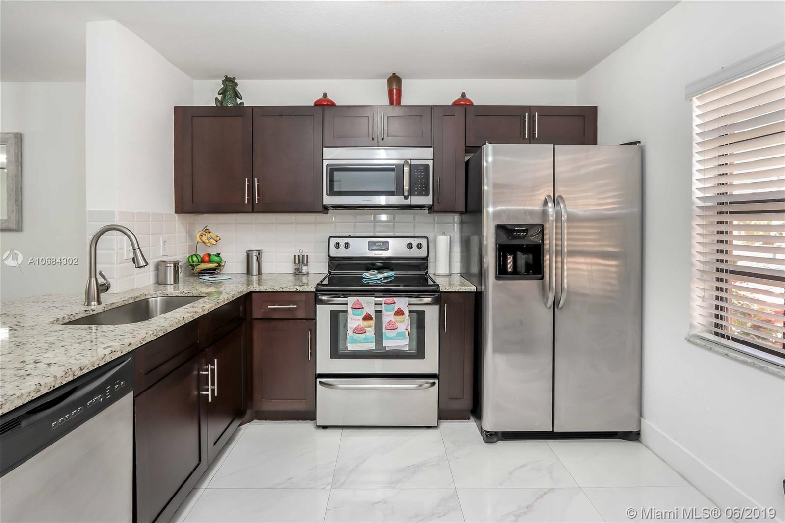 Stunning Modern Townhouse Featuring an Open Floorplan with gorgeous porcelain tile throughout the Fist floor. IMPACT resistant French doors open up to the Newly fenced (2018) in Huge patio that’s perfect for entertaining, half of the patio has tile and a roof, installed in (2019) the other half has pavers and green areas . The beautiful open kitchen is decorated with newer cabinets, accented with granite countertops & stainless steel appliances (2016) and warm natural light through the kitchen window. New Full Size Washer and Dryer (2018). The stairs and upstairs features Waterproof Parkay Floors with lifetime WARRANTY. New central a/c (2018) with 10 year warranty ! Remodeled Bathroom, Spacious bedrooms, Walk in Closet and so much more !!! Home has Aluminum Shutters, will not last!