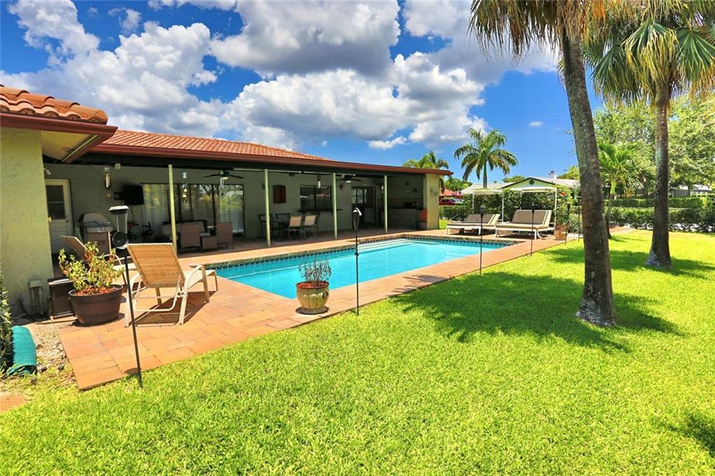 Fantastic home in the heart of Coral Springs most desirable Maplewood community. Perfectly located close to grocery stores, shopping mall, restaurants, fitness center, Sawgrass Expressway and Florida Turnpike. Interior boasts updated kitchen, remodeled powdered room, partially remodeled guest and master bathroom, formal dining and living rooms, breakfast area, snack bar counter, family room, den/office, laundry room, decorative wood beams and much more. Exterior features include circular driveway, fenced yard, swimming pool all on a spacious corner lot. Another great feature....cabana bathroom. Hurry, this one will not last long! The den/office was added giving the square footage of 2,799 under air