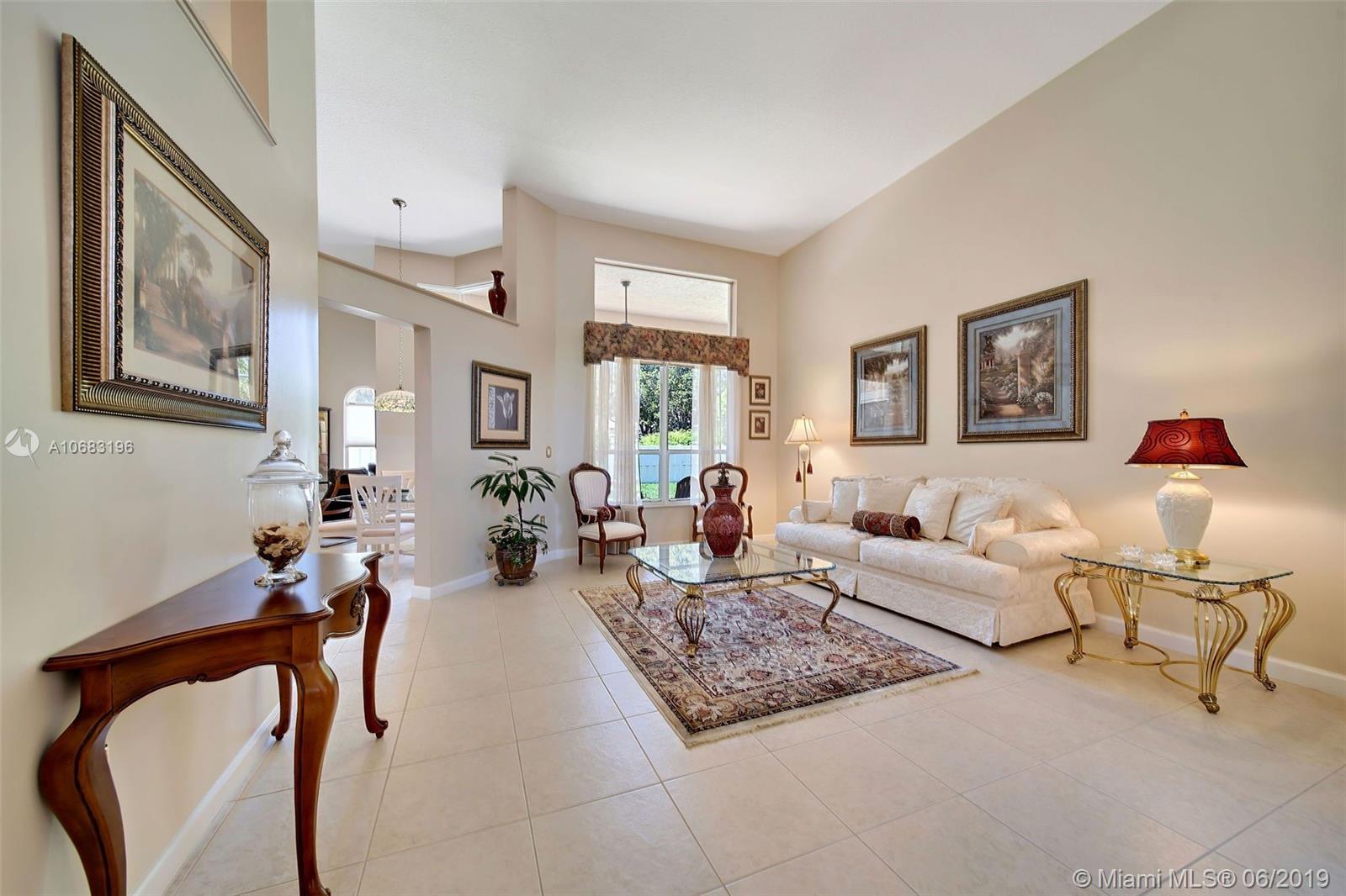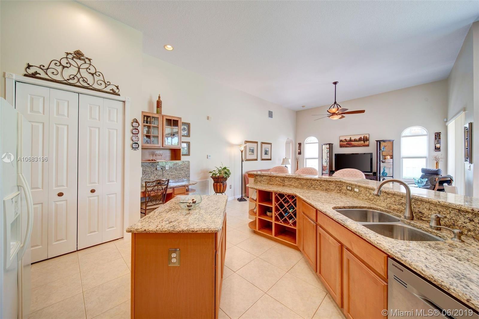 Spectacular is how you will feel when entering your beautifully appointed home located in much sought-after Crystal Harbour. 4/3+study. Upgraded Monterey model with lots of natural lighting. Granite kitchen counter/bar area extended to include wine rack & extra shelving. Electric dbl oven & stovetop. If desired - gas outlet available. Partition was extended to ceiling between liv rm & kit. Formal dining room plus separate dining area off fam rm. Bay window to view your private back yard. Large covered porch with pavers - perfect for bbq & relaxing. **TWO central a/c units - both replaced recently. Tiled floors throughout. Luxurious mast bath. Walk-through shower. Roman tub. Separate sinks. *Bidet* Linen closet. Private bedrm & bath off fam rm - perfect for guests. Cenral vac system