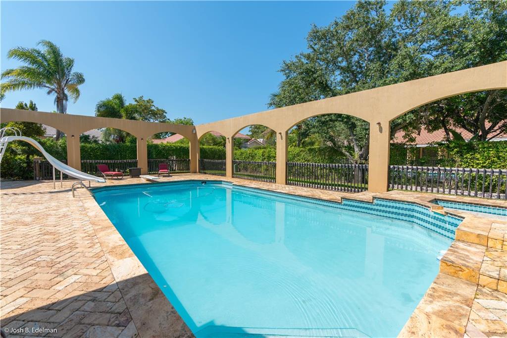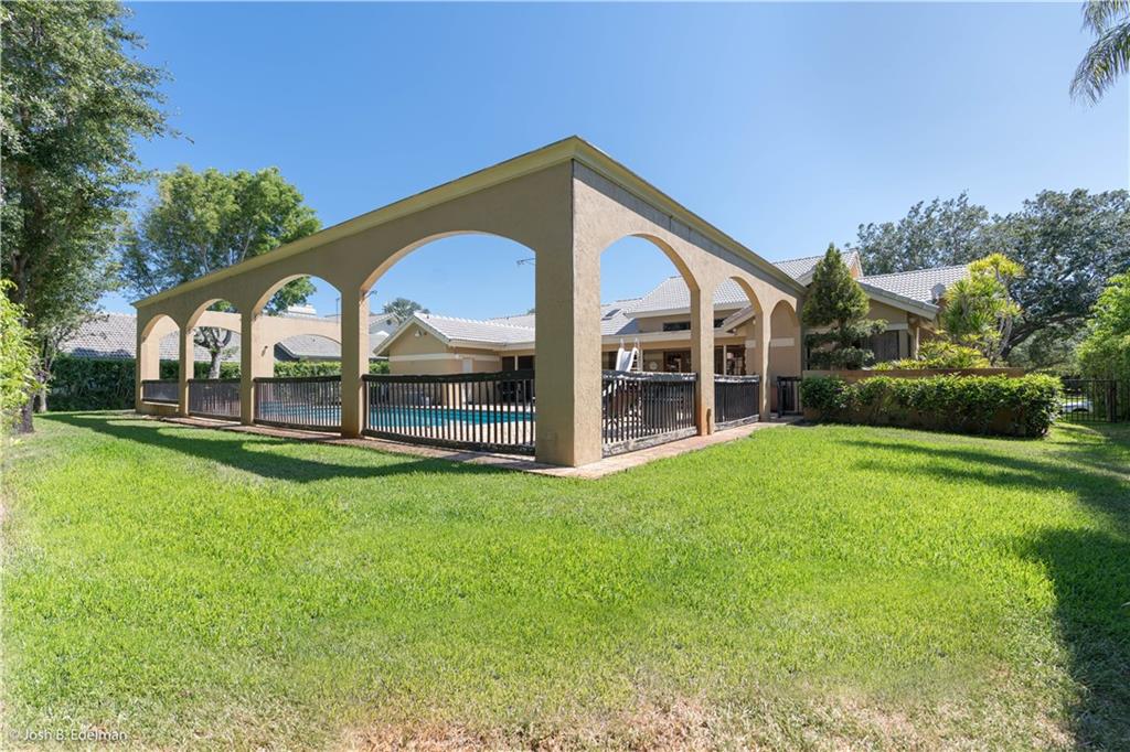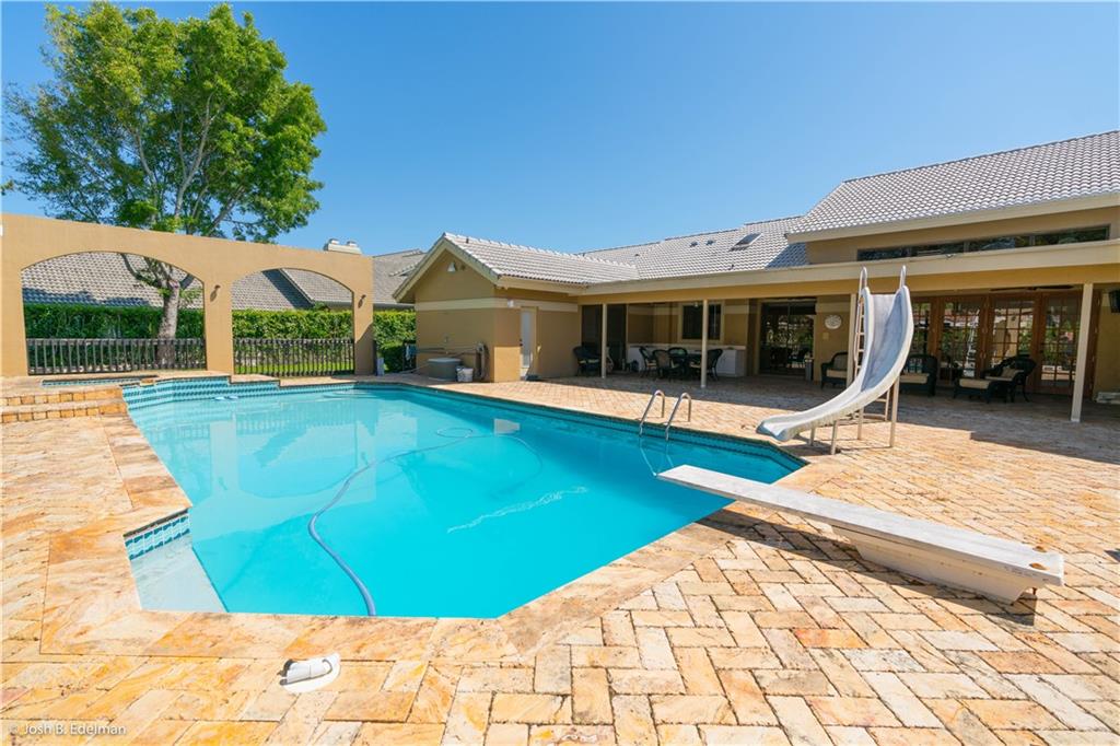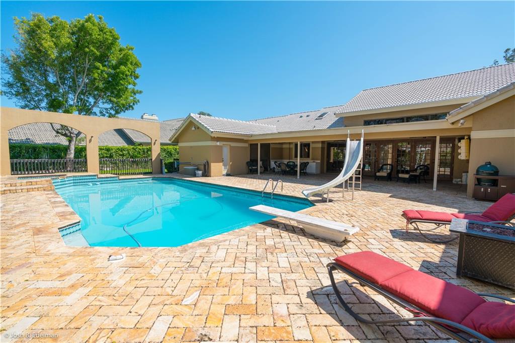 Welcome HOME to Eagle Trace Country Club (non-equity community). Stunning pool home in the desirable custom Estates section ~ over 4700 square feet featuring marble flooring with inlays & hardwood floors. Luxury Master suite complete with custom closet & dressing room complete with wine/coffee bar. One story design with split bedroom plan affords privacy & access for all ages. Gourmet Kitchen with 36" cooktop, Viking food warmer, dual wall ovens, breakfast bar & eat-in kitchen. Entertaining patio is spacious & perfect for any party & BBQ (large roofed area so you can use it even during rain showers; tropical swimming pool & sliding board is sure to make Florida summers more enjoyable! Many custom built-ins: family room bookcases, dining room wine closet/cellar & more! Must see!